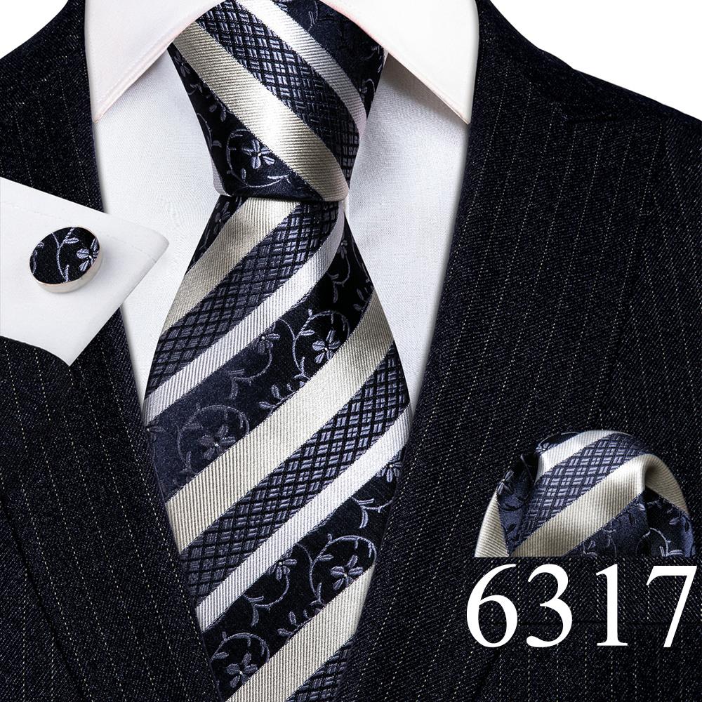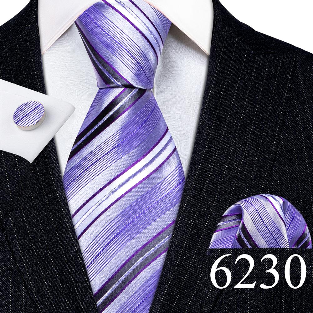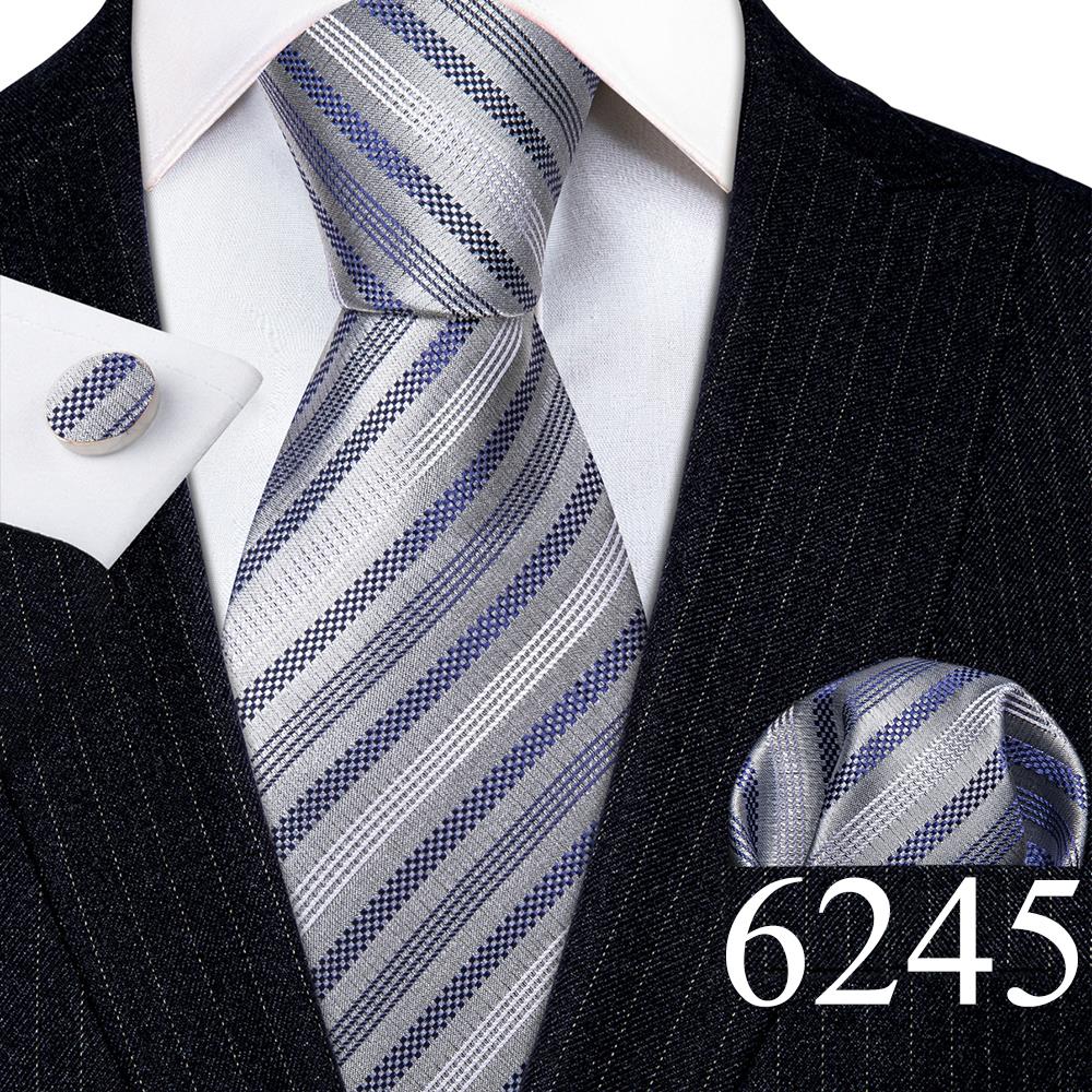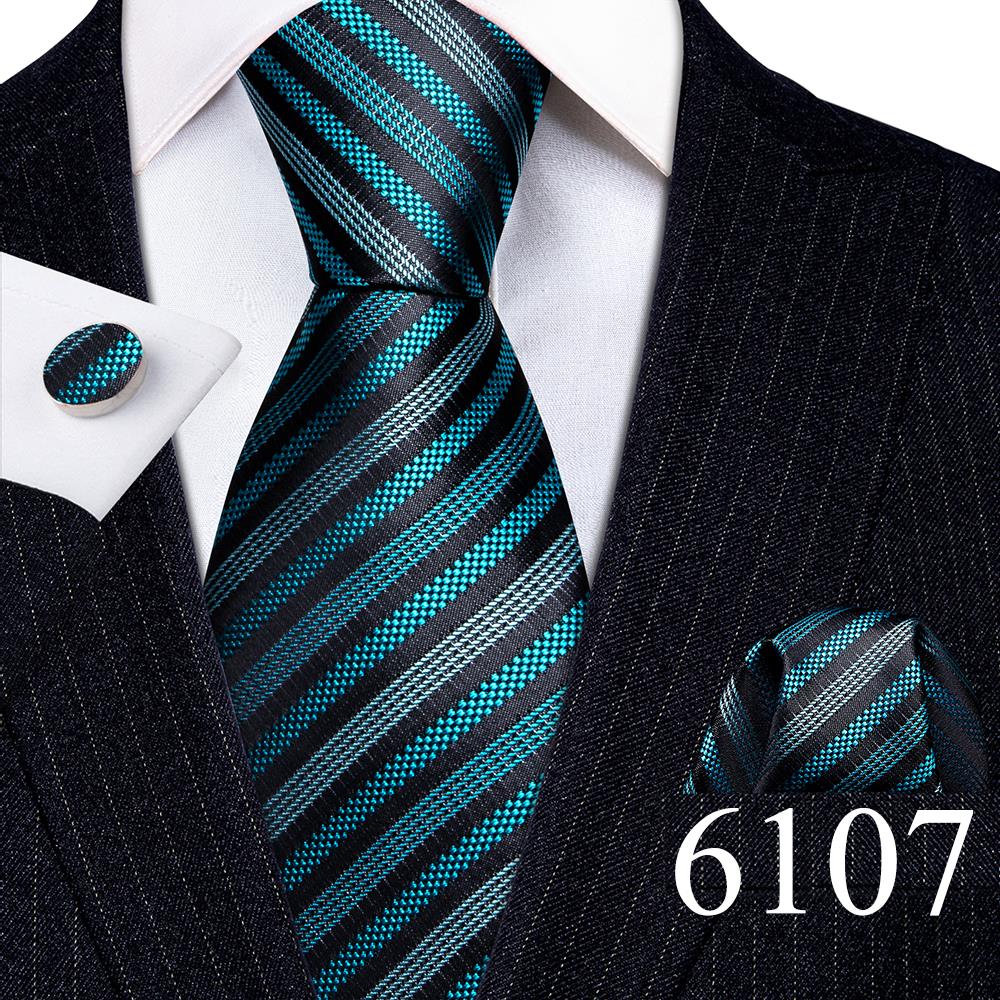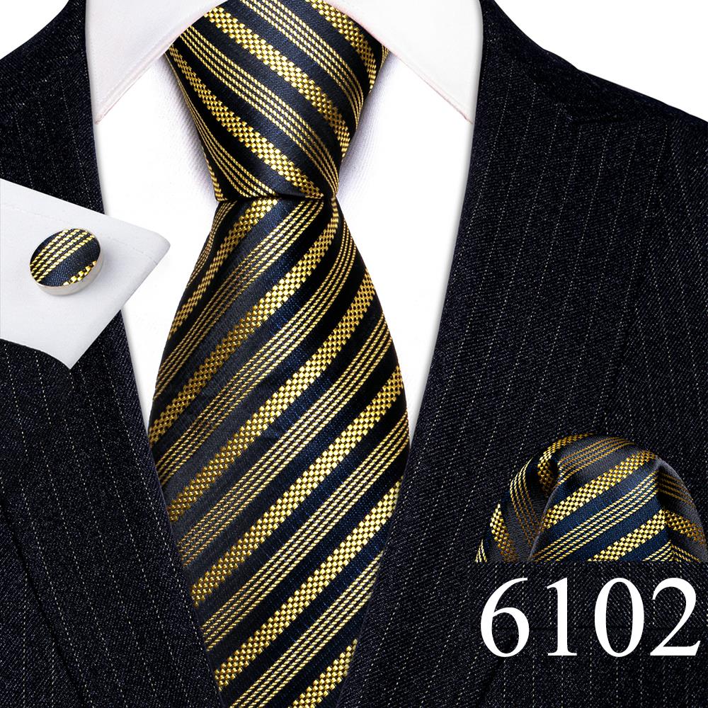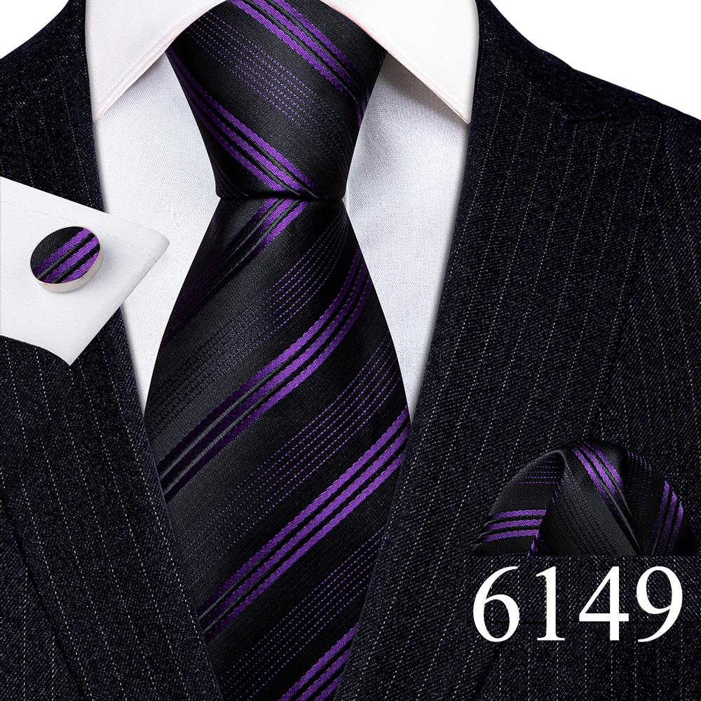 Дизайнерские шелковые галстуки в синюю и черную полоску для мужчин, красные, зеленые, золотые, фиолетовые, белые галстуки на шею, комплект свадебных запонок Hanky Barry · Wang 6113