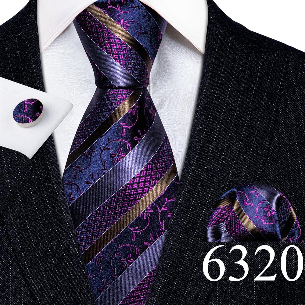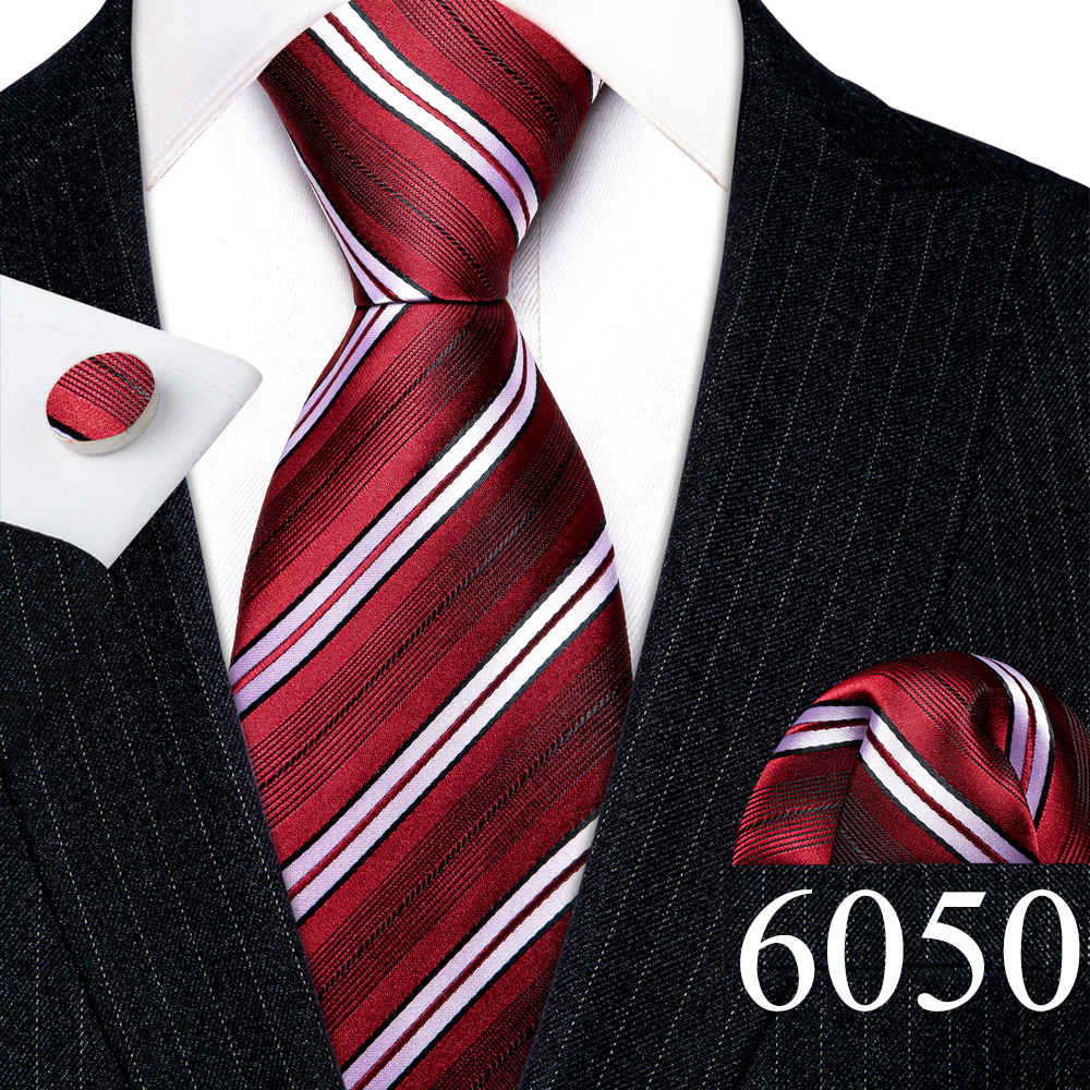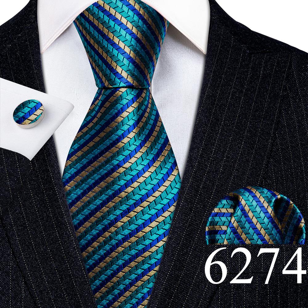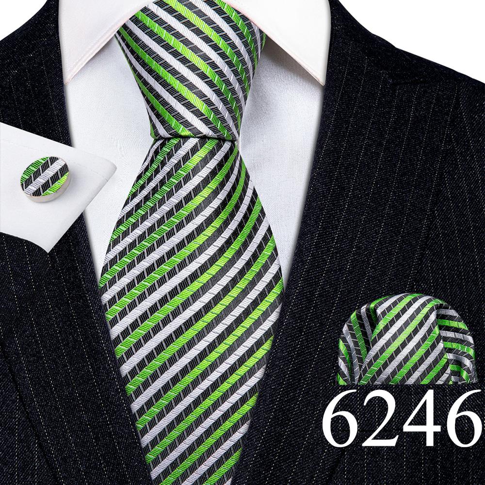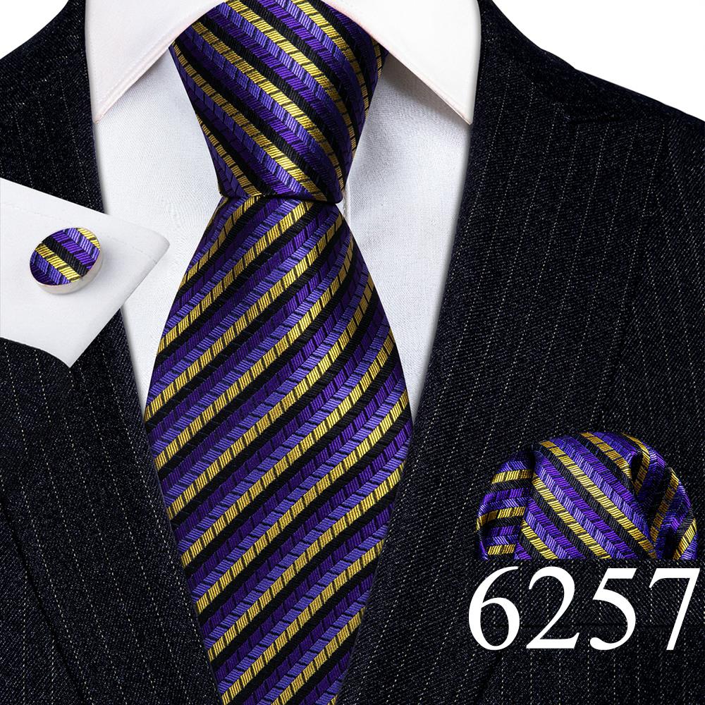 Дизайнерские шелковые галстуки в синюю и черную полоску для мужчин, красные, зеленые, золотые, фиолетовые, белые галстуки на шею, комплект свадебных запонок Hanky Barry · Wang 6113