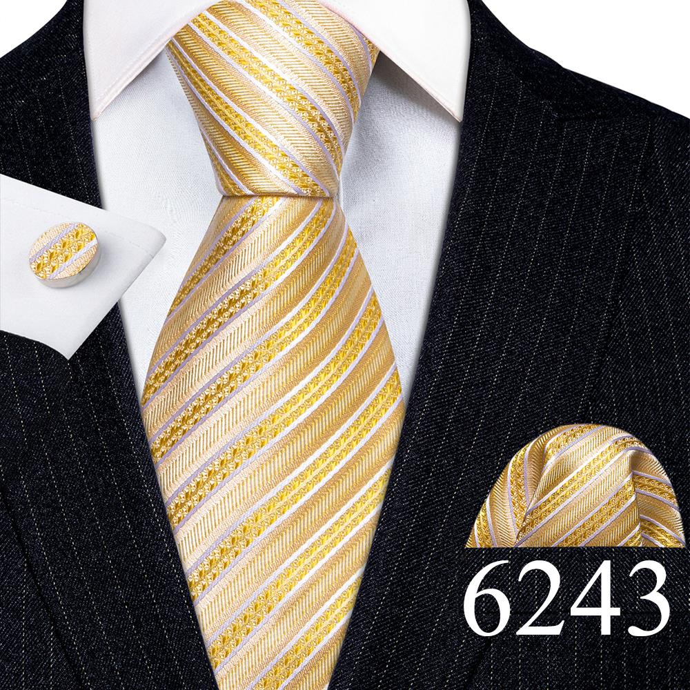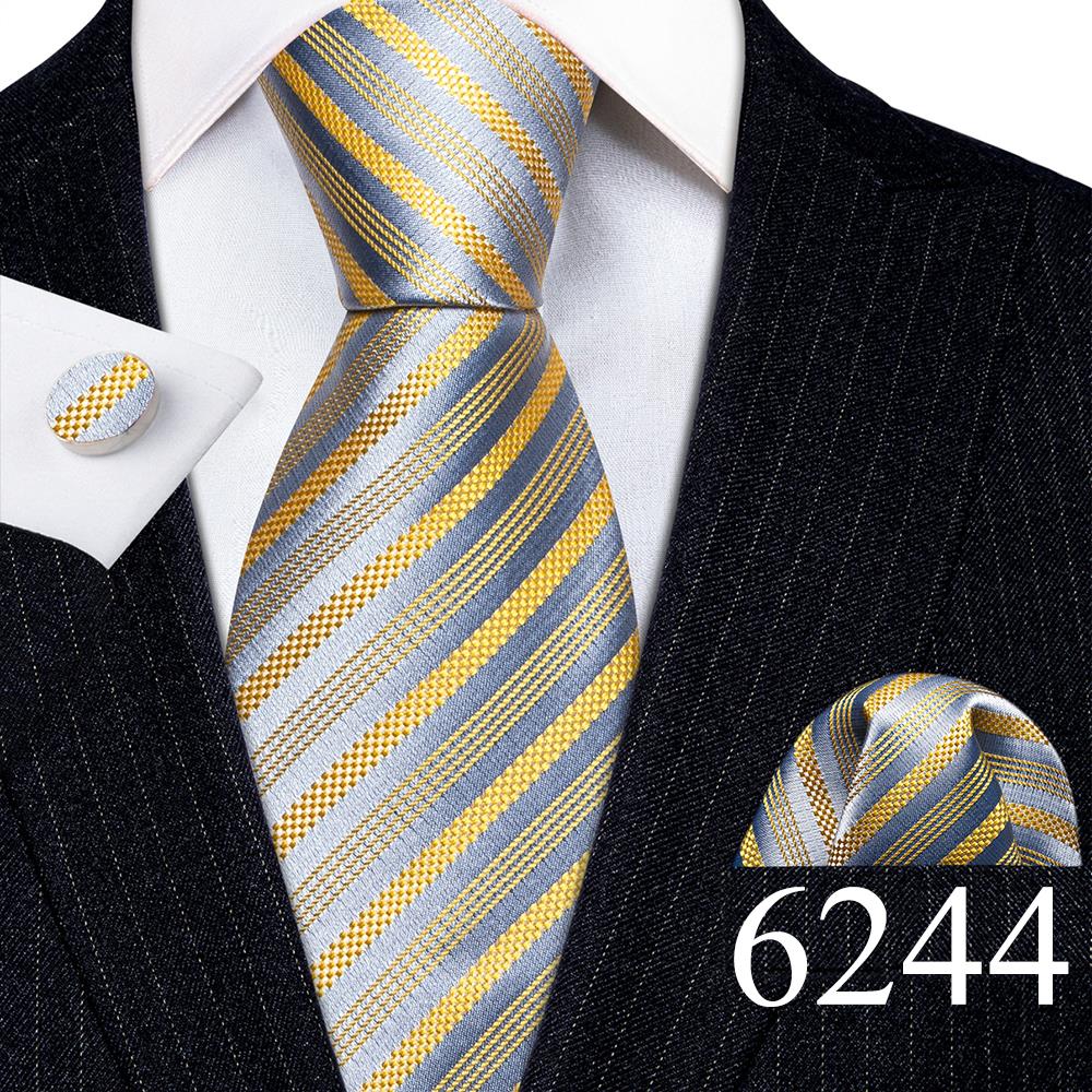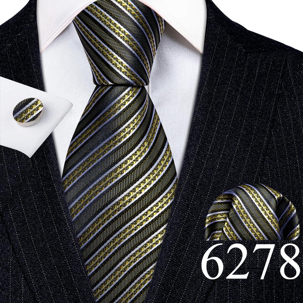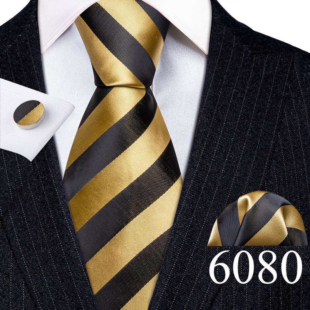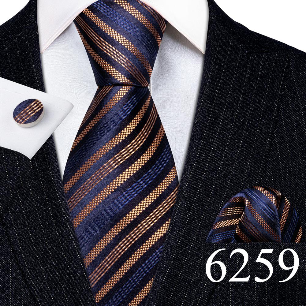 Дизайнерские шелковые галстуки в синюю и черную полоску для мужчин, красные, зеленые, золотые, фиолетовые, белые галстуки на шею, комплект свадебных запонок Hanky Barry · Wang 6113