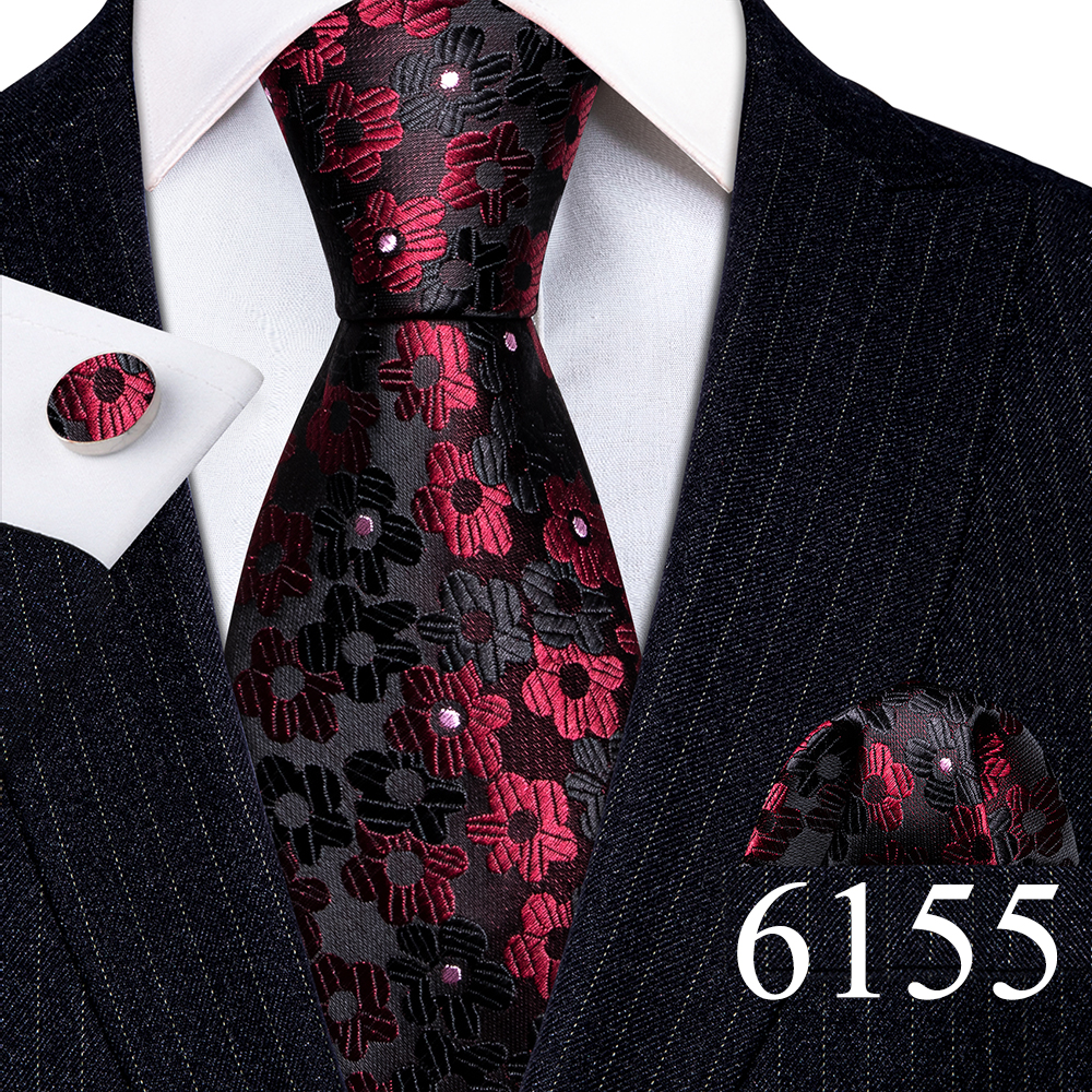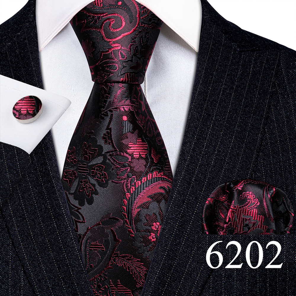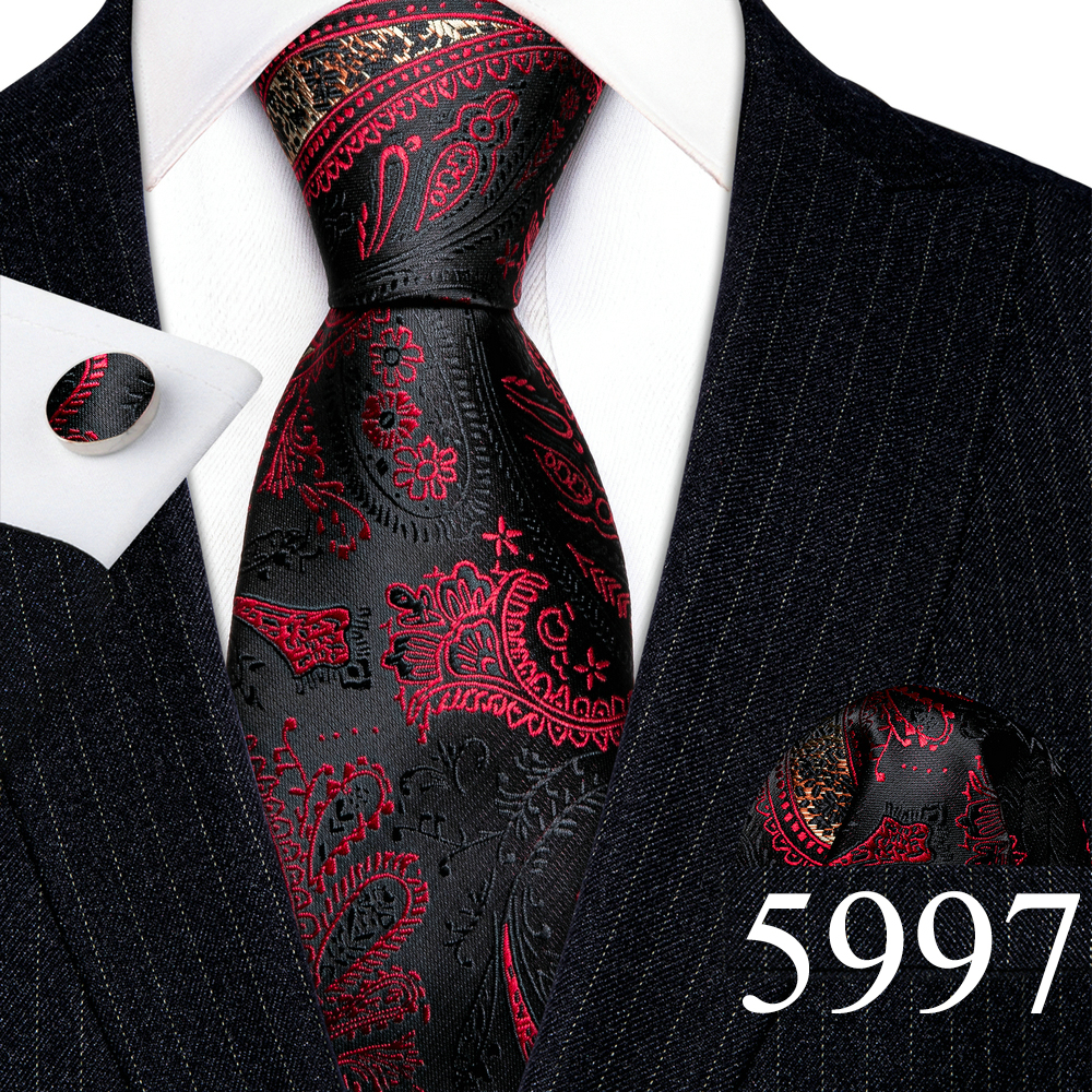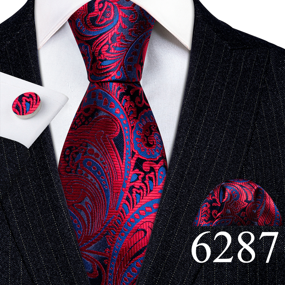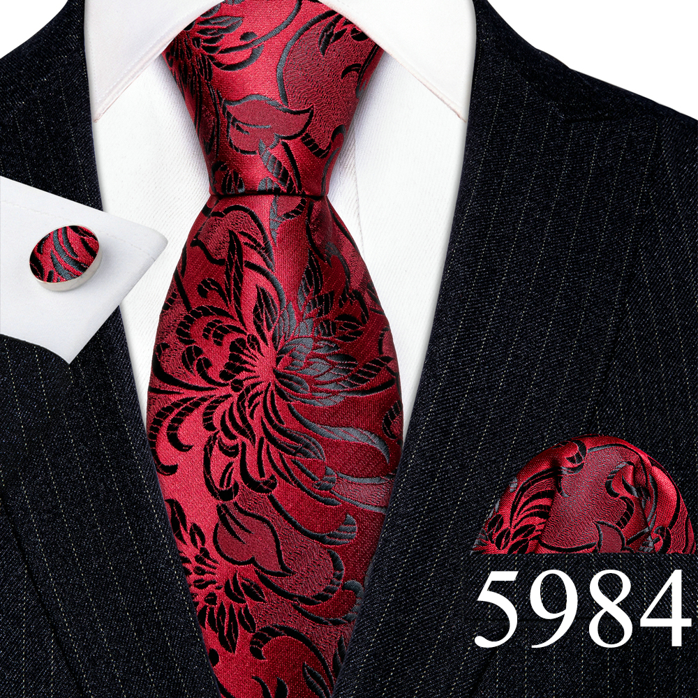 Дизайнерский галстук набор для мужчин 2023 красный цветок Пейсли в клетку черный синий золотой галстук носовой платок запонки Свадебные Барри · Ван 6289
