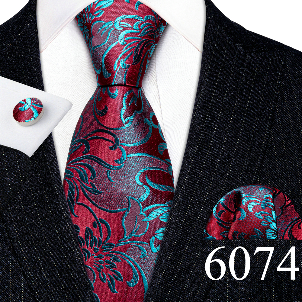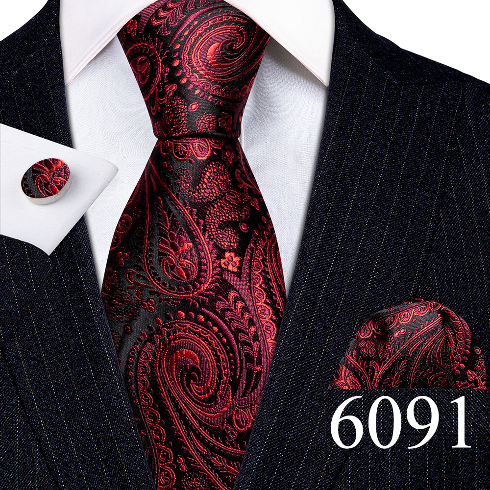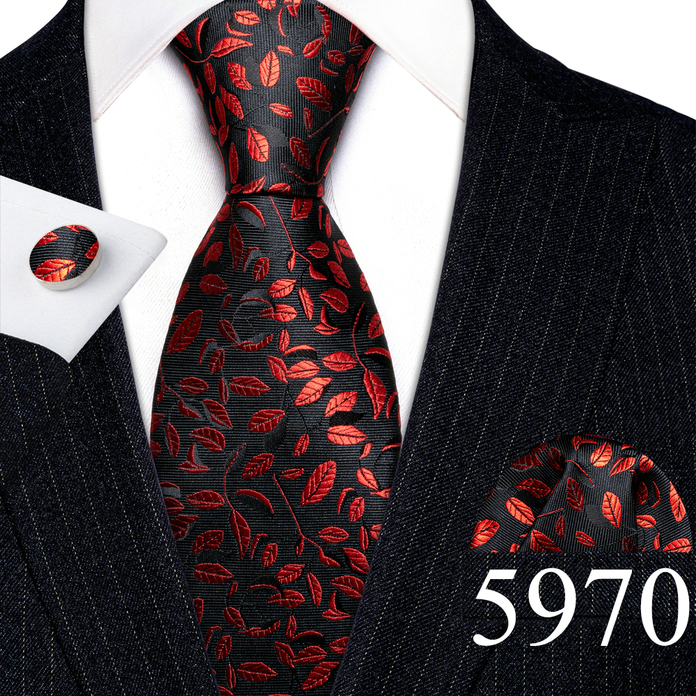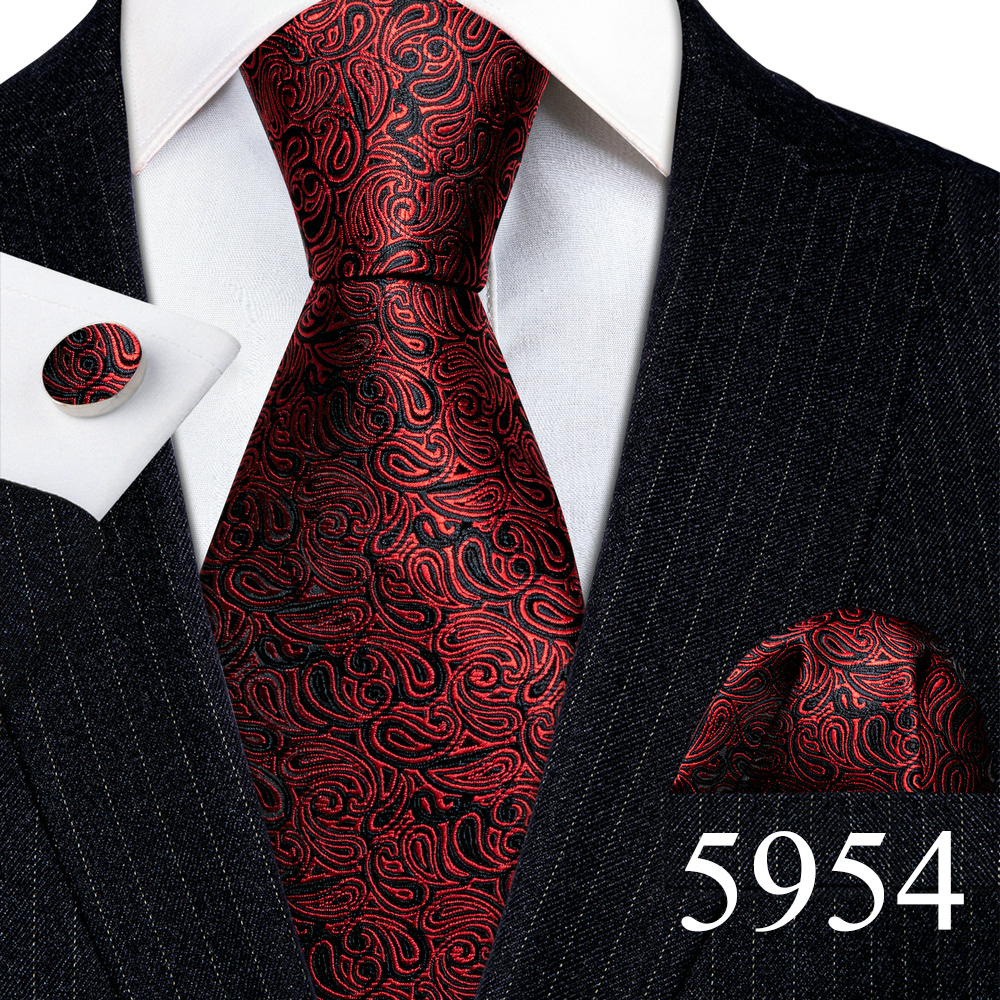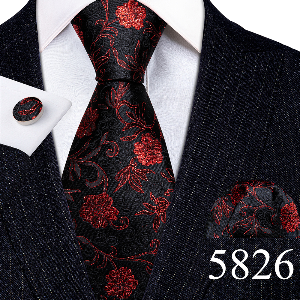 Дизайнерский галстук набор для мужчин 2023 красный цветок Пейсли в клетку черный синий золотой галстук носовой платок запонки Свадебные Барри · Ван 6289