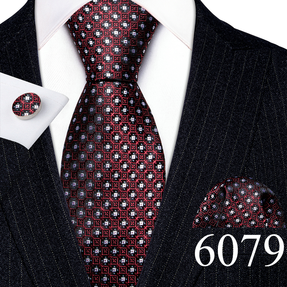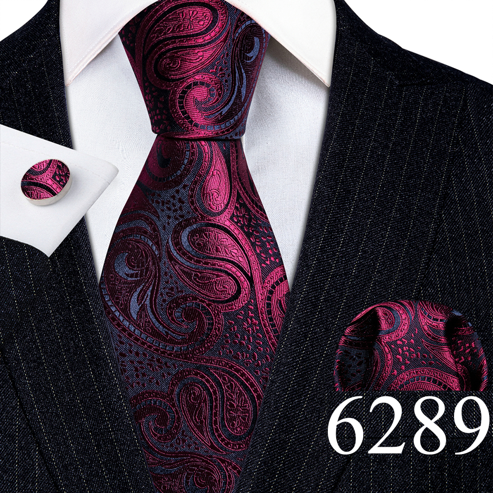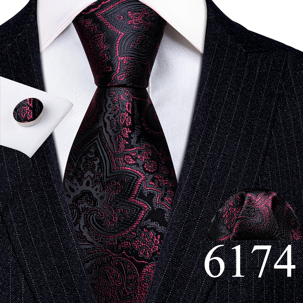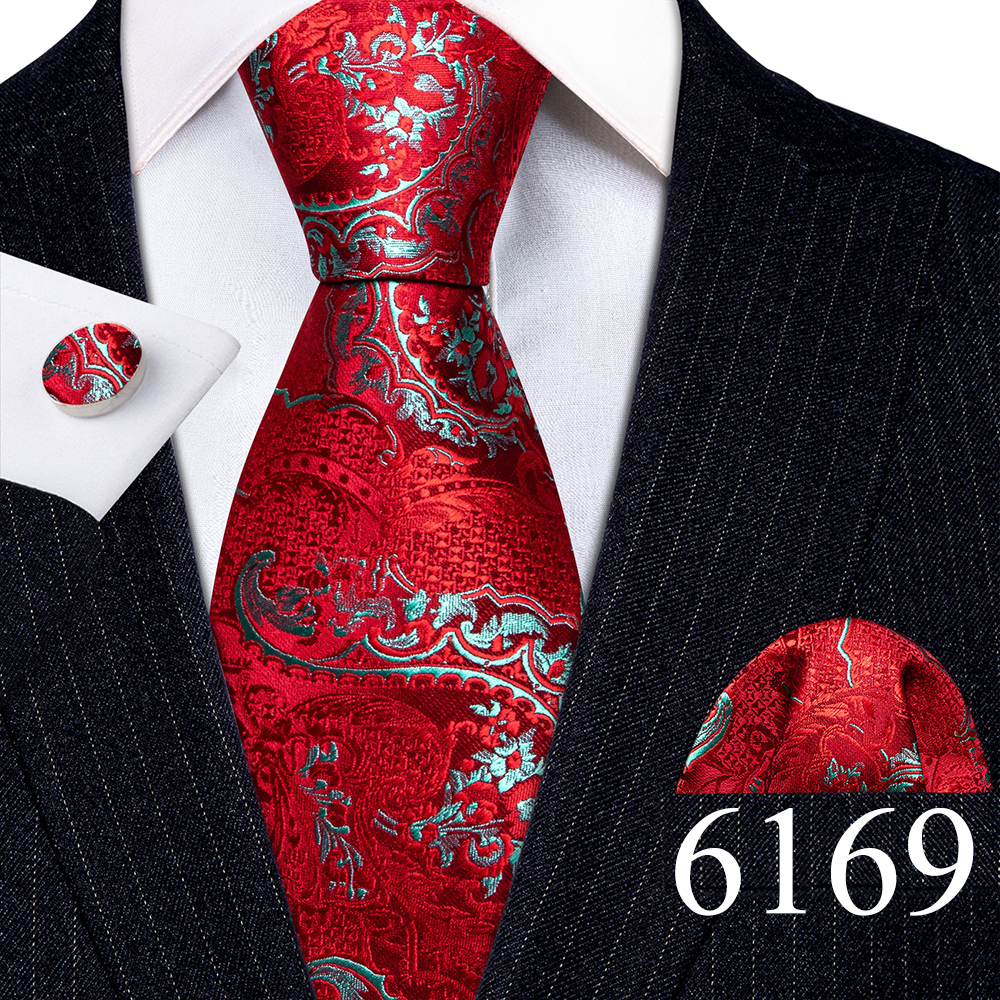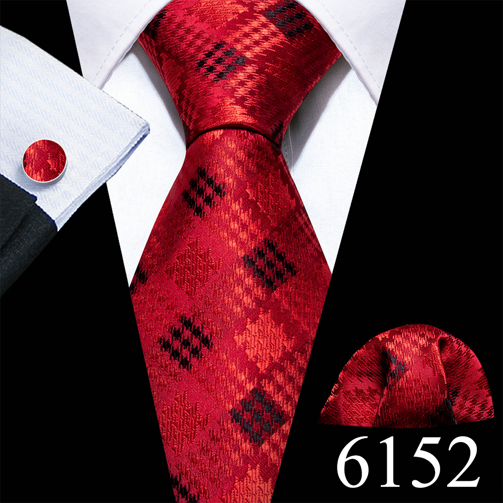 Дизайнерский галстук набор для мужчин 2023 красный цветок Пейсли в клетку черный синий золотой галстук носовой платок запонки Свадебные Барри · Ван 6289