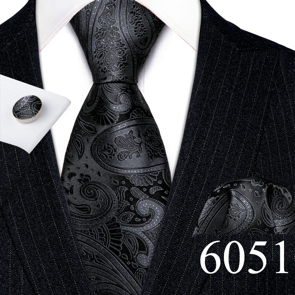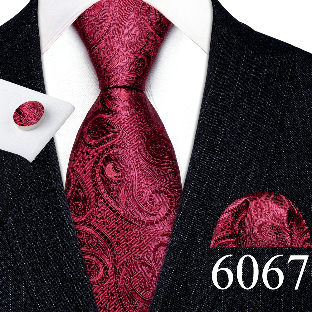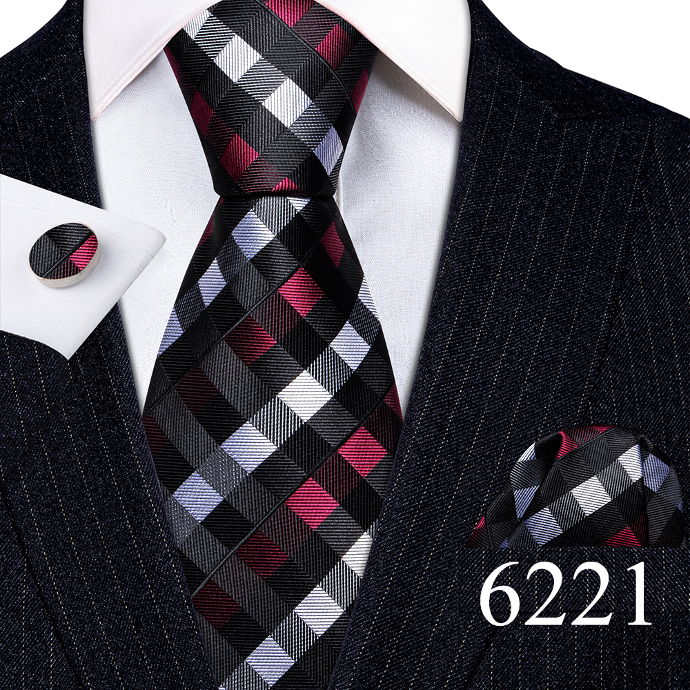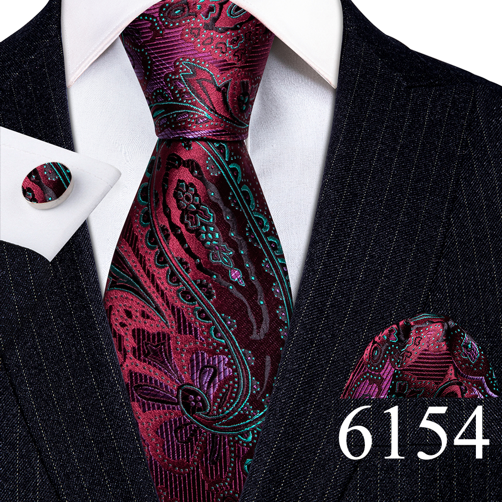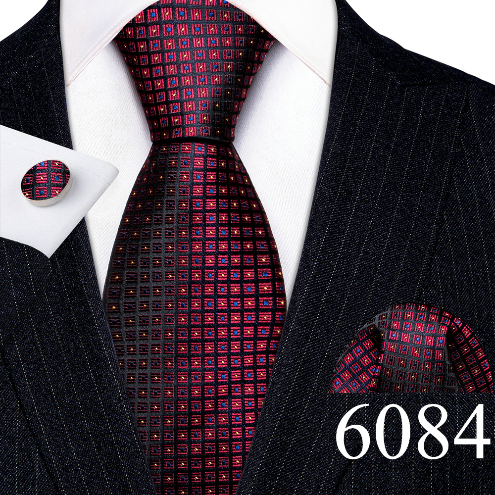 Дизайнерский галстук набор для мужчин 2023 красный цветок Пейсли в клетку черный синий золотой галстук носовой платок запонки Свадебные Барри · Ван 6289