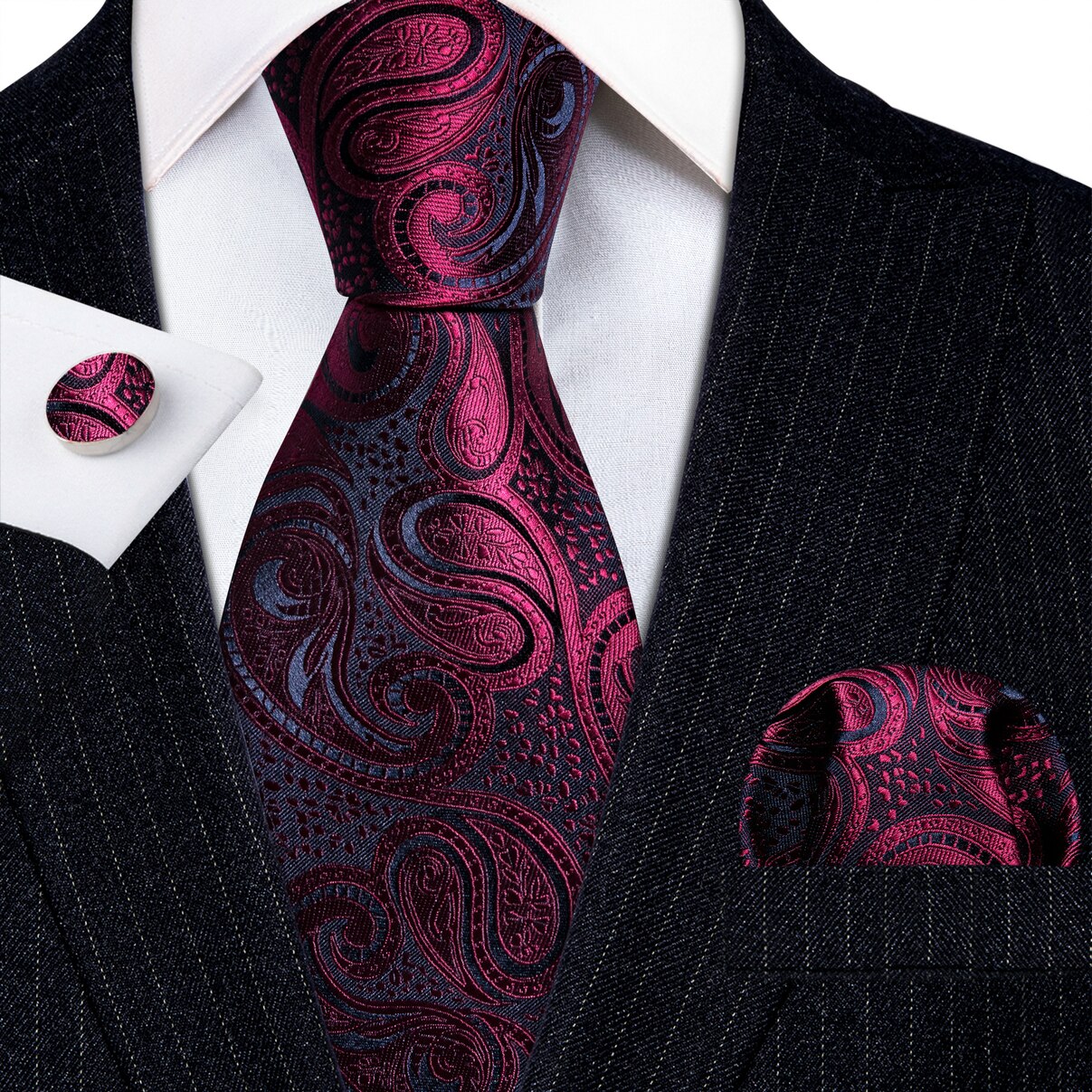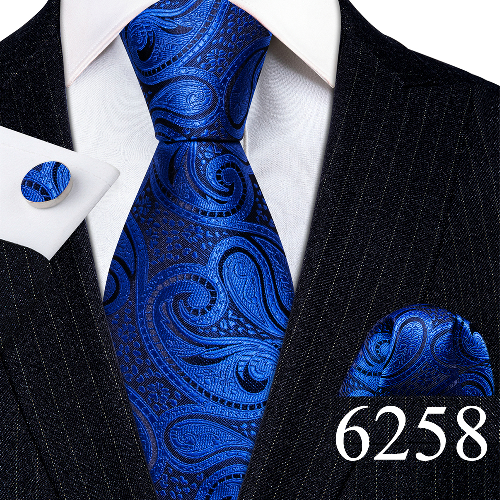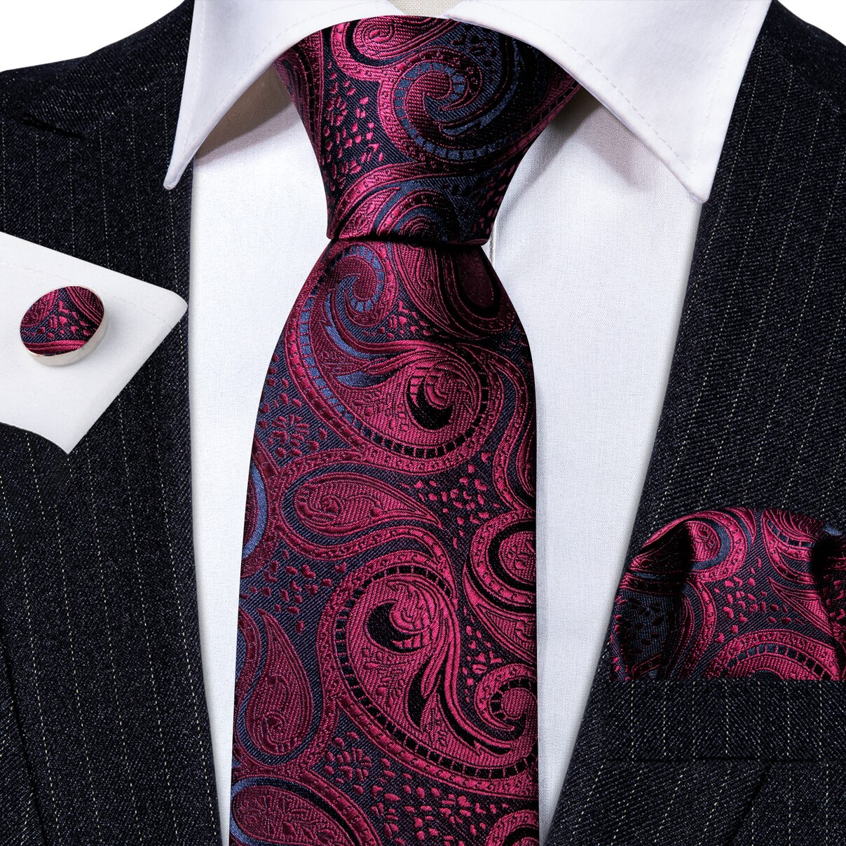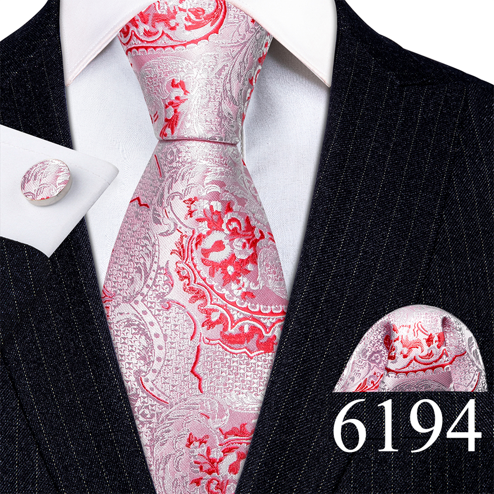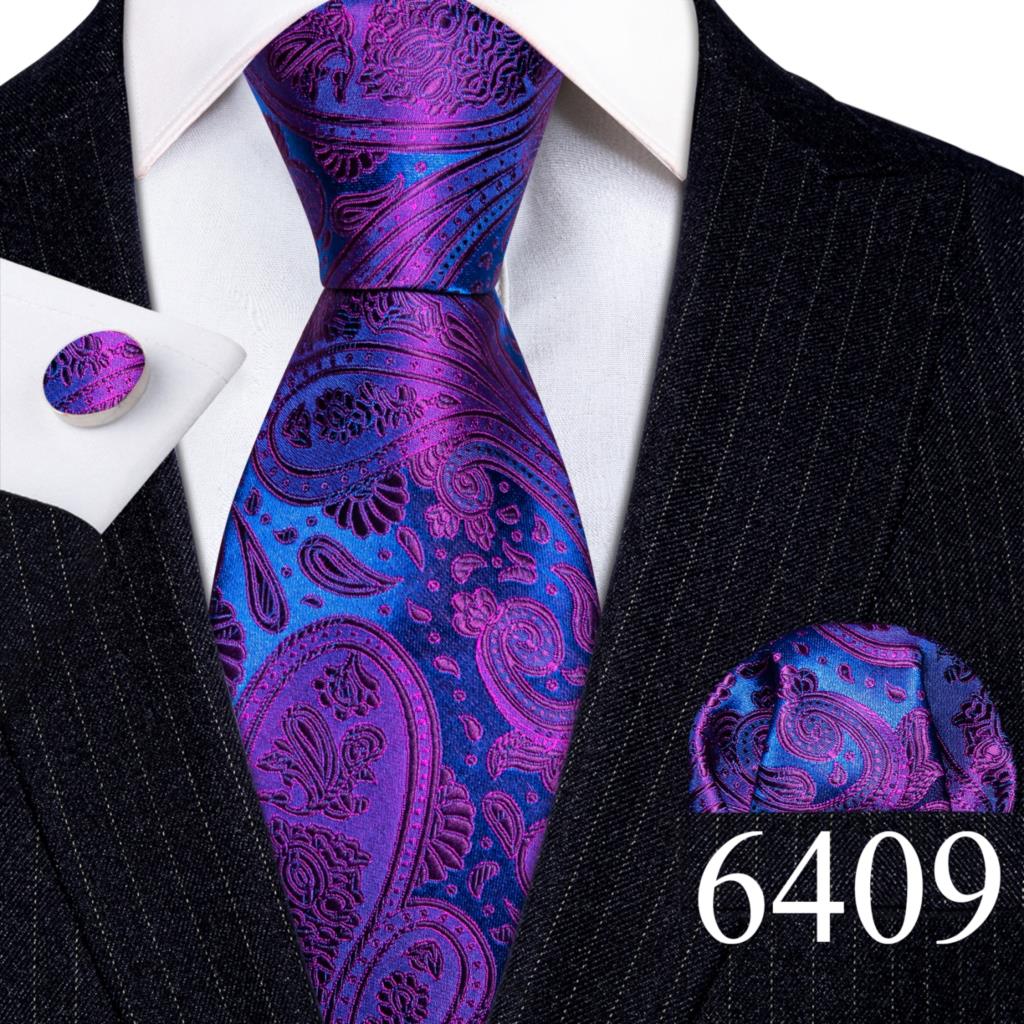 Дизайнерский галстук набор для мужчин 2023 красный цветок Пейсли в клетку черный синий золотой галстук носовой платок запонки Свадебные Барри · Ван 6289