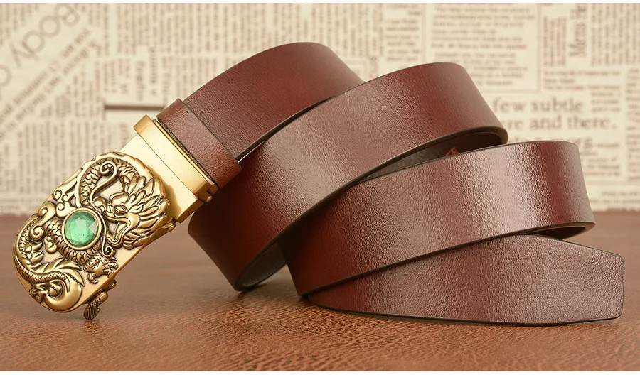 Дизайнерский ремень с автоматической пряжкой и пряжкой из воловьей кожи для мужчин, модные мужские ремни из натуральной кожи, деловой пояс, винтажный