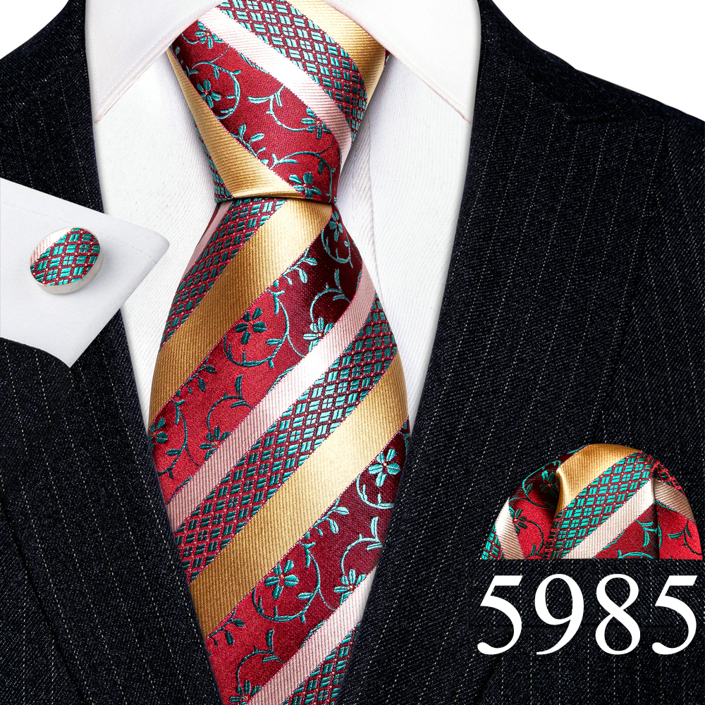 Дизайнерский Шелковый галстук, набор для мужчин, золотой, черный, белый, в полоску, красный, синий, фиолетовый, галстук, платок, запонки, свадебные Барри · Wang 6313