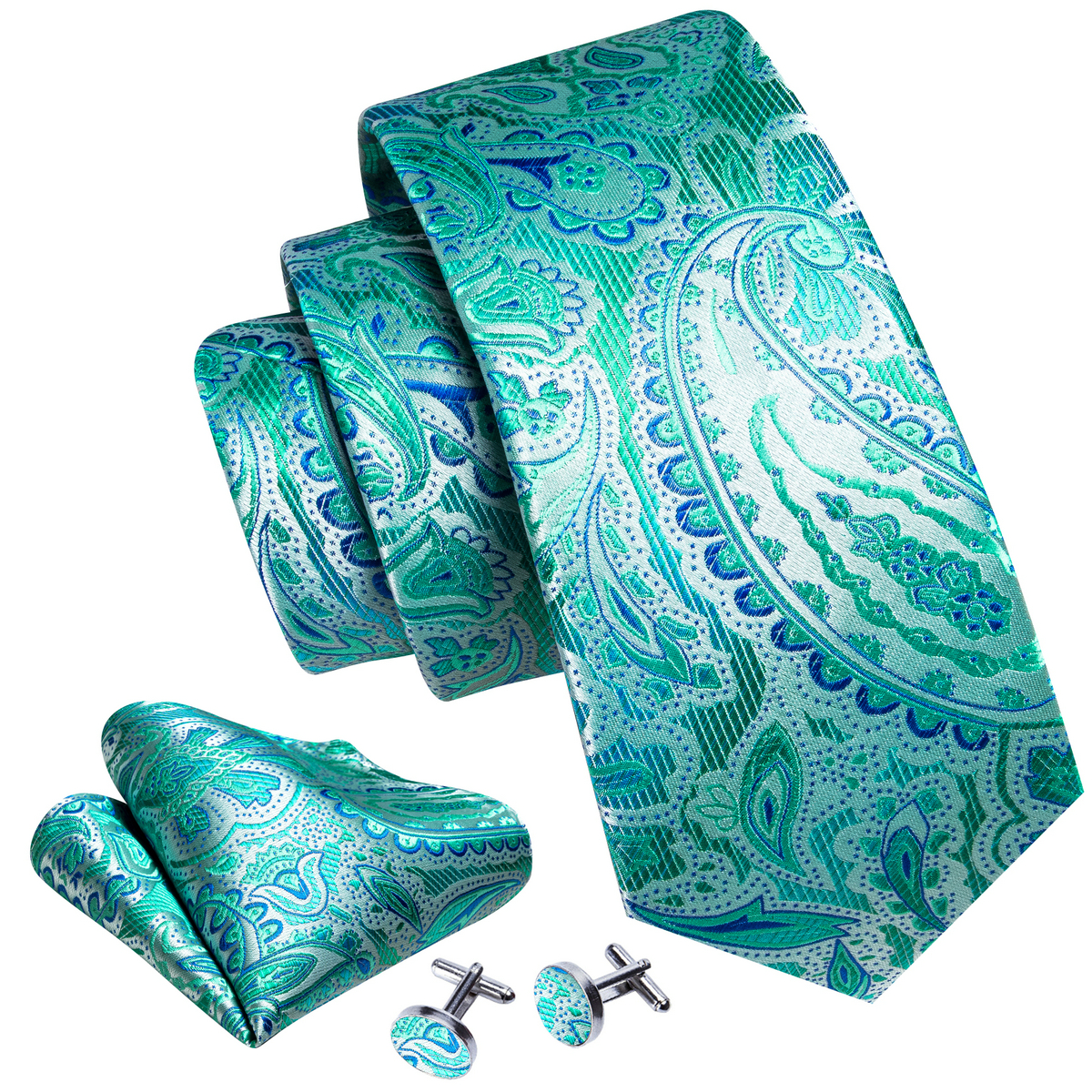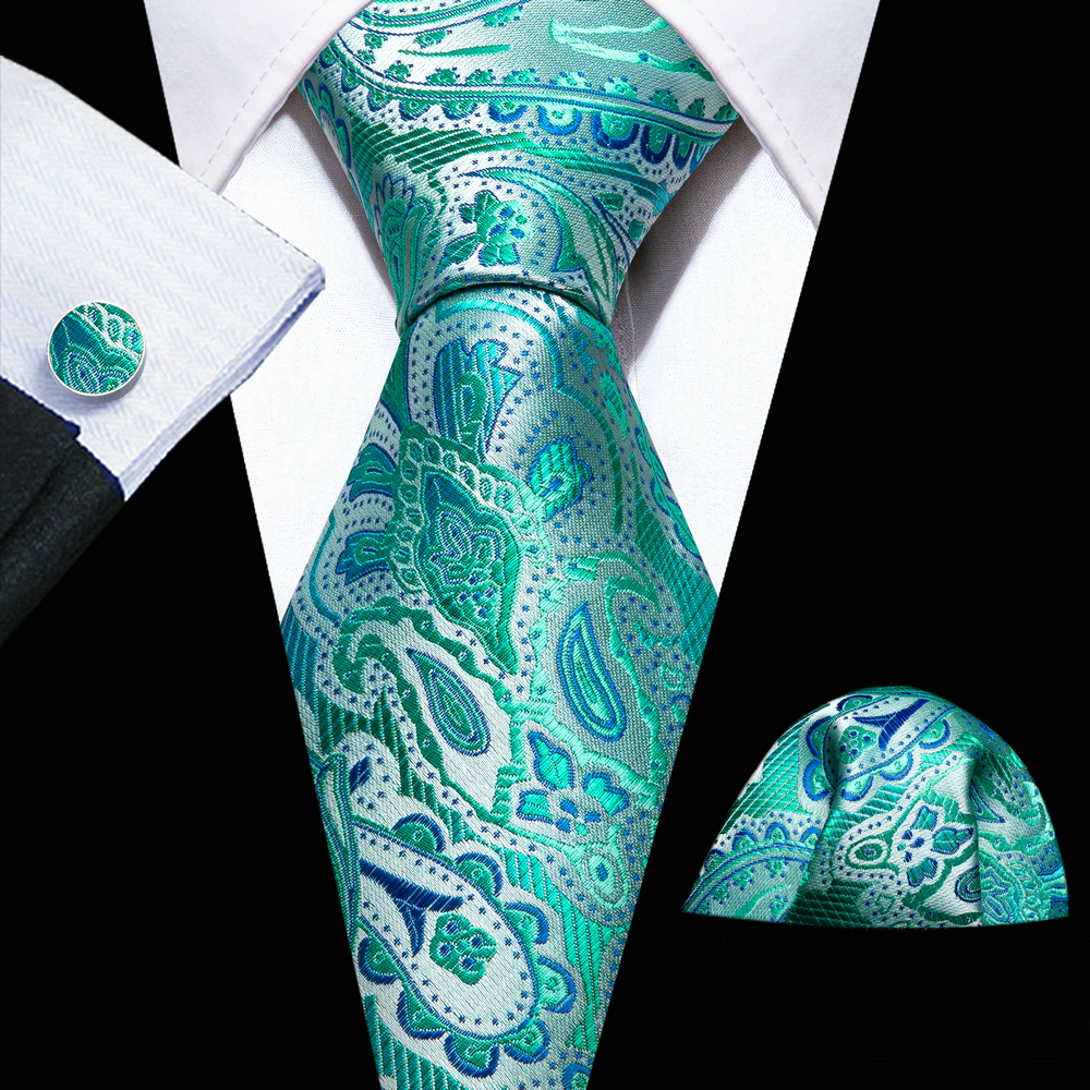 Дизайнерский Шелковый Мужской комплект с галстуком и запонками зеленого и синего цвета Wang Tie Pin A-5959