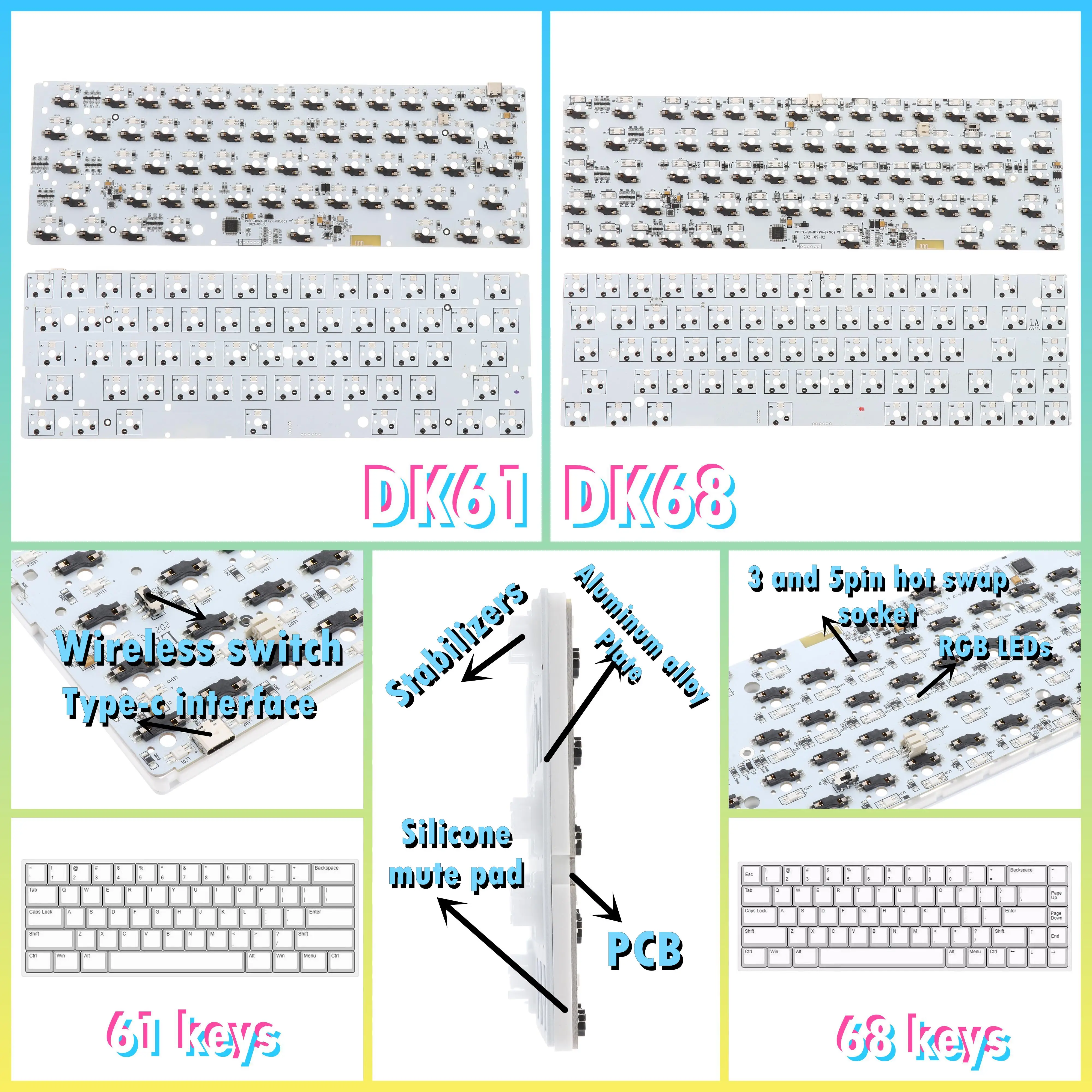 Dk61/dk68 3 режима Беспроводная 3/5pin Горячая замена Rgb механическая клавиатура Diy Kit 68 клавиш 61 клавиши Bluetooth5.0 2,4G механические клавиатуры