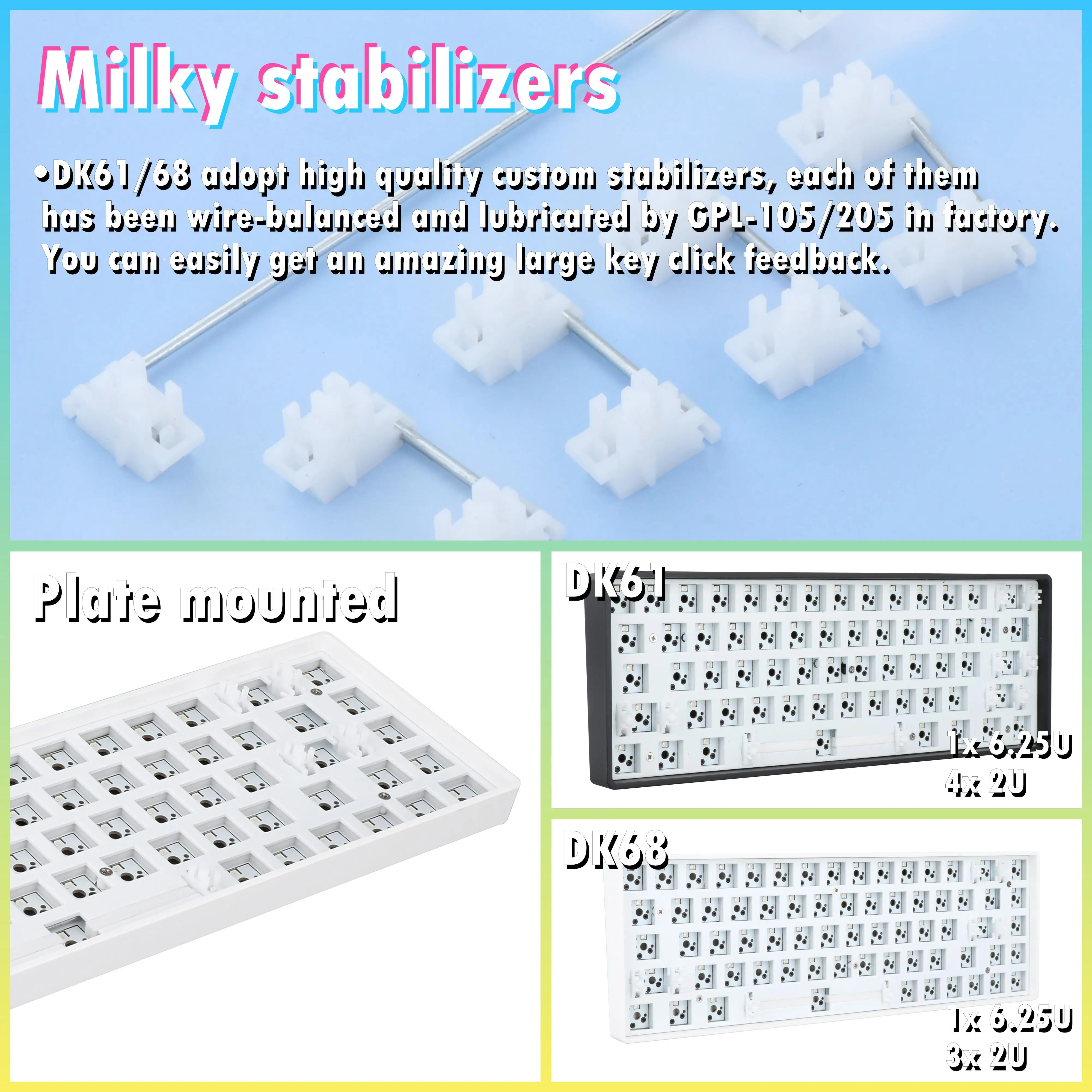 Набор "сделай сам" с горячей заменой: 61 клавиша/68 клавиш мини беспроводной механический набор клавиатуры, белый/черный цвет можно выбрать, лоток с силиконовым материалом, бесшумная накладка между печатной платой и переключателем.