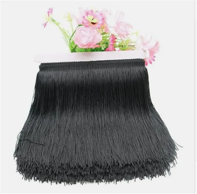 Длинная Бахрома, кружевная бахрома, Полиэстеровая кружевная отделка, лента, юбка для латиноамериканских танцев, занавеска с бахромой для шитья HG07, 1 метр, 15 см