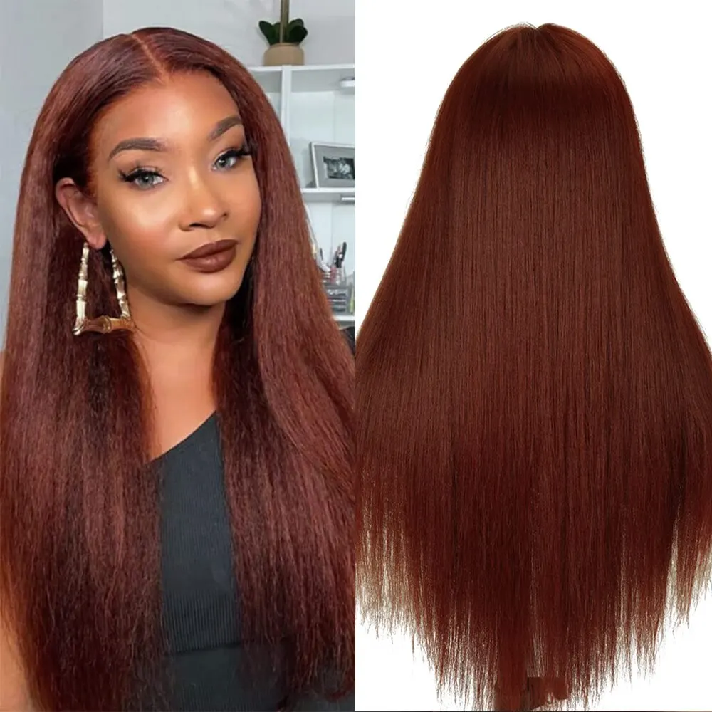 Длинные кудрявые прямые парики синтетические яки прямые волосы Жаростойкие Волокна темно-ауберн без клея афро парики для черных женщин
