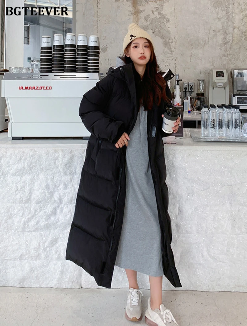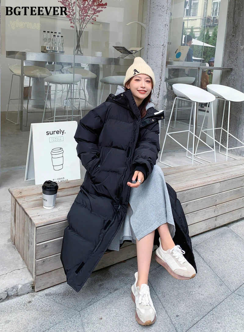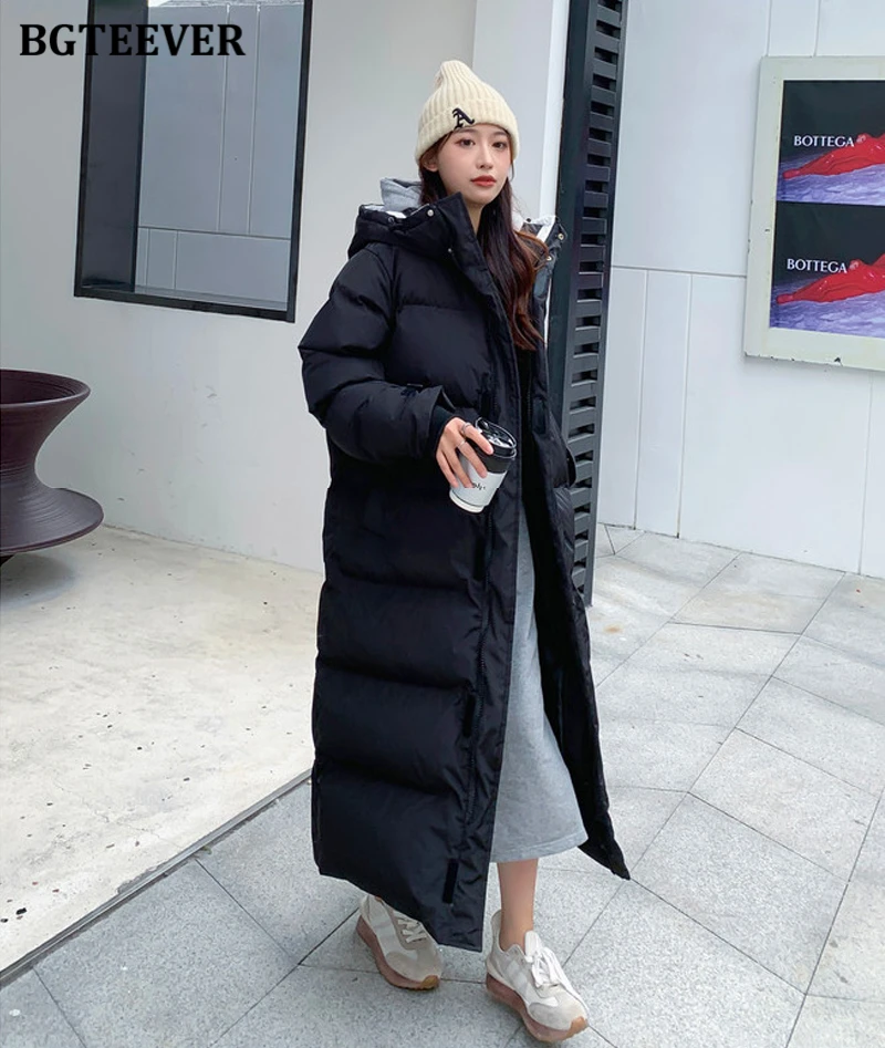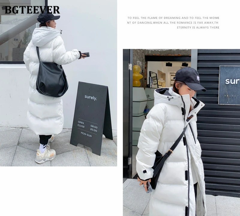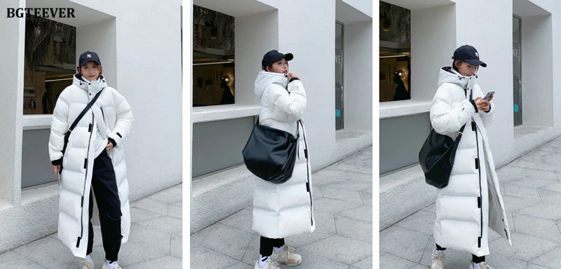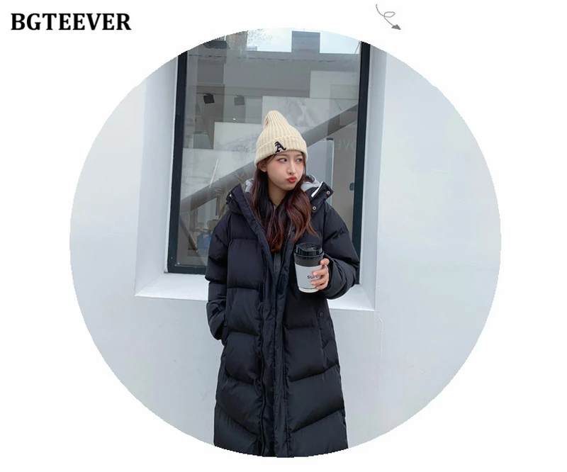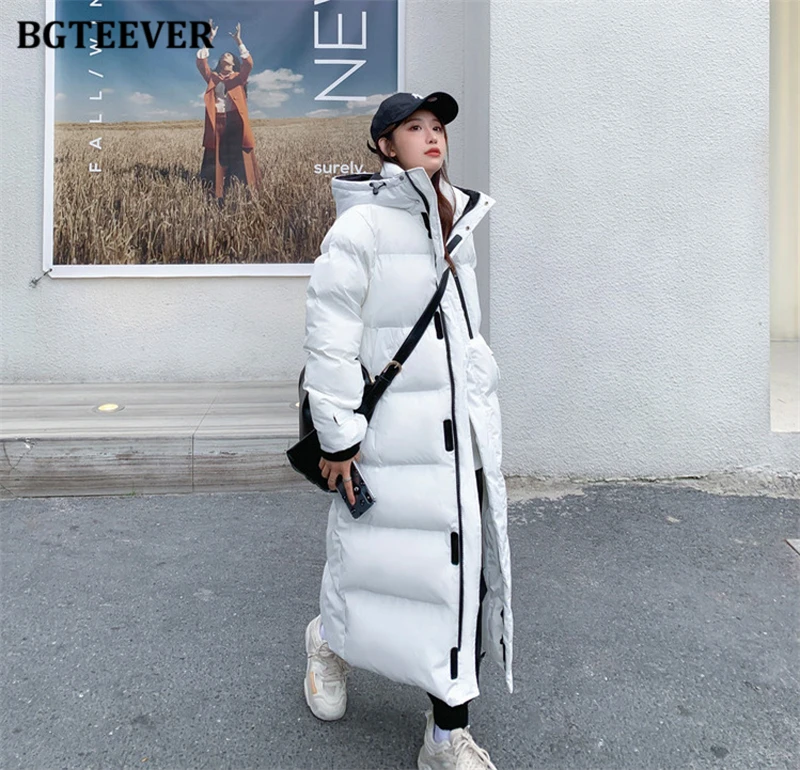 Длинный пуховик BGTEEVER большого размера, женская зимняя утепленная парка с хлопковой подкладкой, женские теплые пуховики, новинка