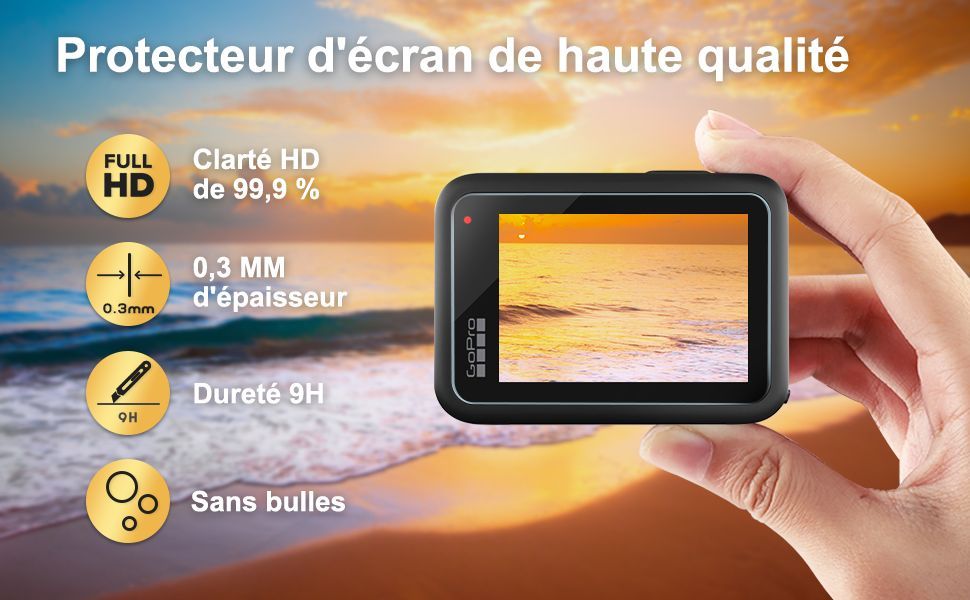 [Твердость 9H] Отлично защитит дисплей Go Pro от царапин.