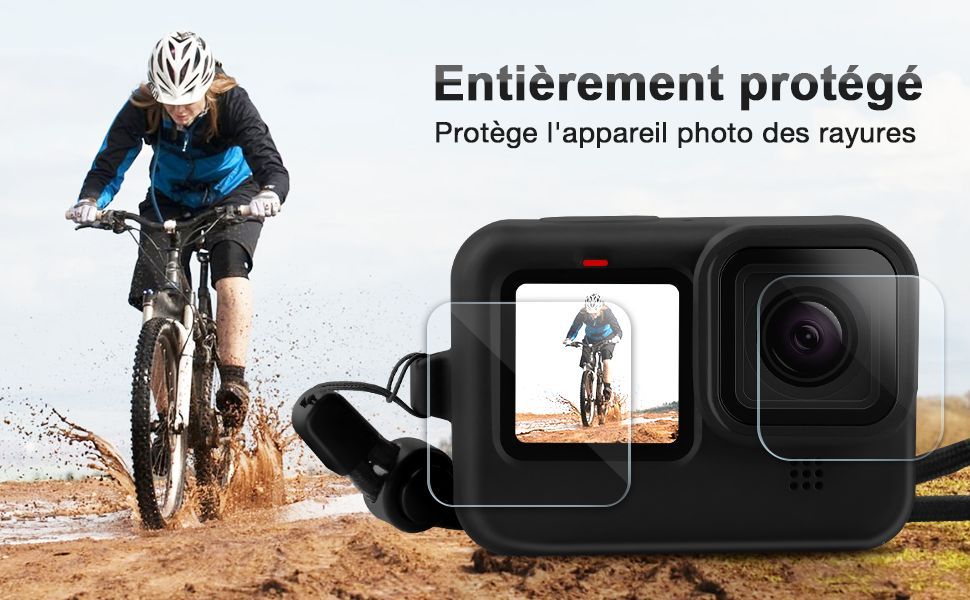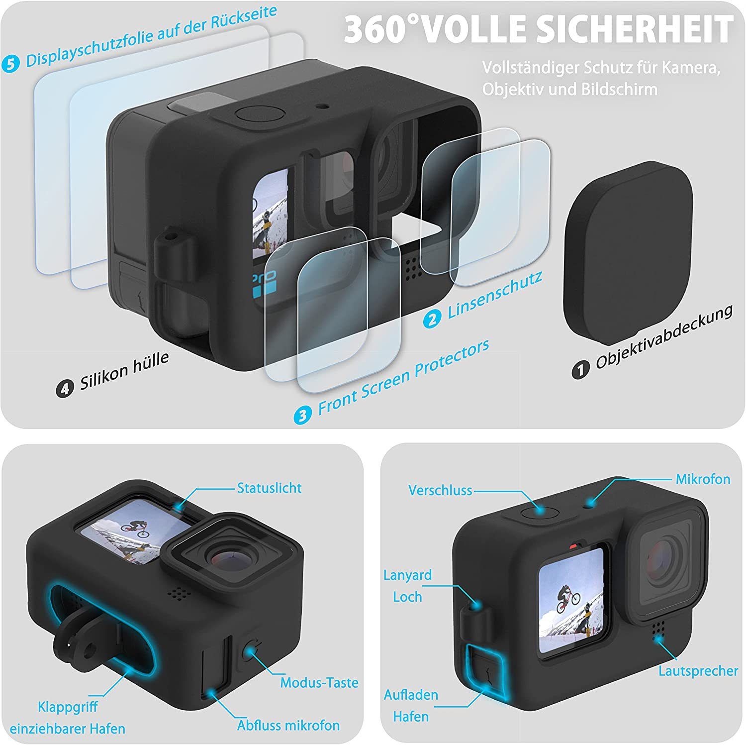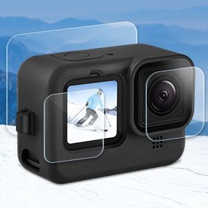 [Простота установки] Клей без пузырьков упрощает установку защитной пленки для экрана.Высококачественный силиконовый чехолИзготовлен из силиконовой резины премиум-класса, защищает вашу экшн-камеру Hero 9/10/11 Black от царапин, отпечатков пальцев, световых ударов и легких ударов.
