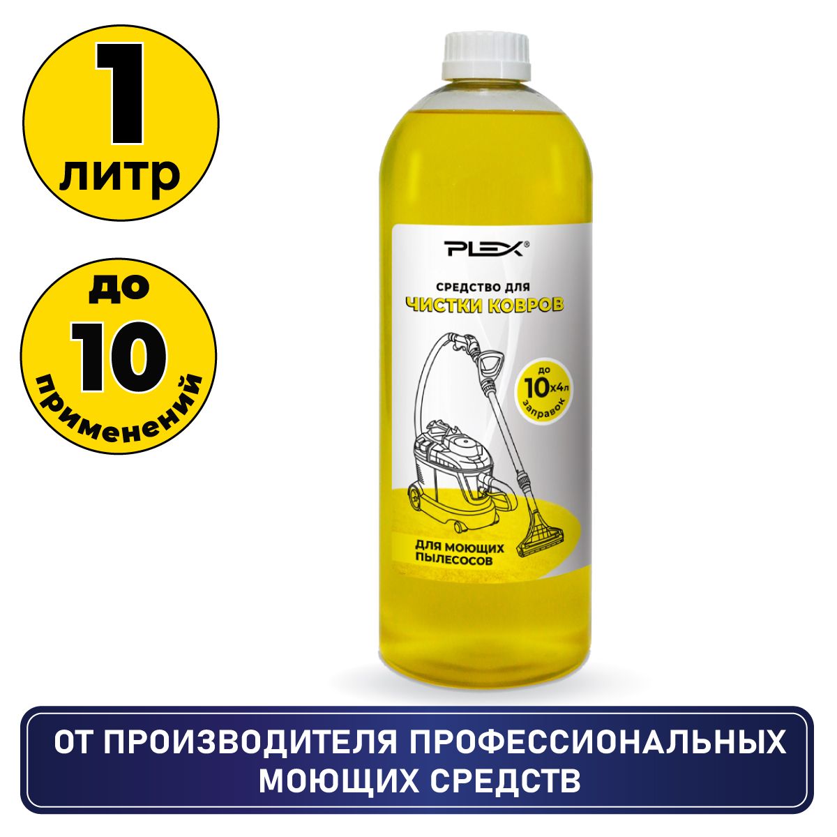 СРЕДСТВО ДЛЯ ЧИСТКИ КОВРОВ PLEX – концентрированная жидкость для чистки ковров, ковровых покрытий, синтетических текстильных поверхностей, ткани и обивки мягкой мебели от жировых, улично-бытовых и др. органических загрязнений и пятен. Не разрушает структуру волокон, не оставляет следов и разводов, сохраняет и восстанавливает цвет, устраняет неприятные запахи. Используется для профессионального применения.