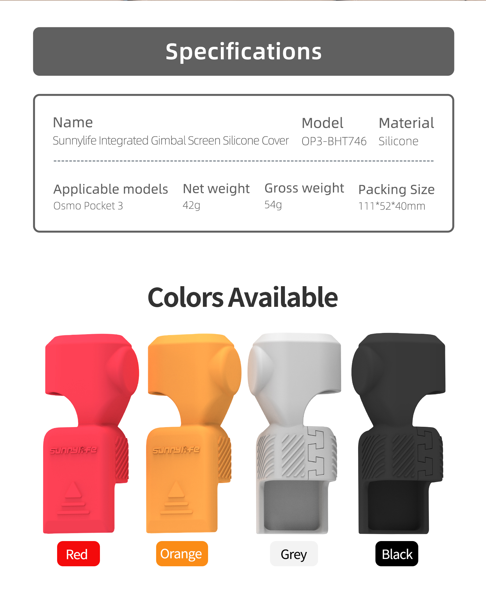 Твердый силиконовый материал, прочный и стильный. Блокирует стабилизатор для эффективной фиксации, мягкий и устойчивый к царапинам для защиты экрана и объектива.
