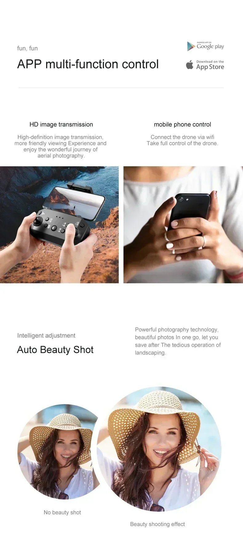 Взлет одной кнопкой/посадка одной кнопкой/подъем/спуск/влево/вправо/360 ° крен/Безголовый режим/скорость/медленная скорость/фото/видео/переключатель двойной камеры/Автоматическое распознавание лиц по фото/датчик силы тяжести/полет на взлетно-посадочной полосе/