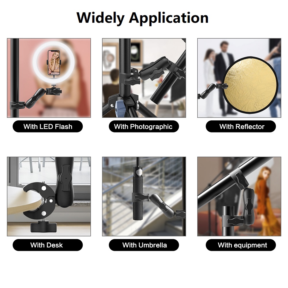• Применимый диапазон диаметров】 Он может расширить диапазон зажима до 22-38 мм или добавить силиконовую прокладку, чтобы уменьшить Диапазон зажима до 9-15 мм. Вы можете использовать его на трубке зеркала заднего вида мотоцикла, также можете использовать его на ограждениях лодок, уличных перилах, стволах деревьев, хомутах для велосипедных труб, удочках, И все, что в пределах размерного диапазона.