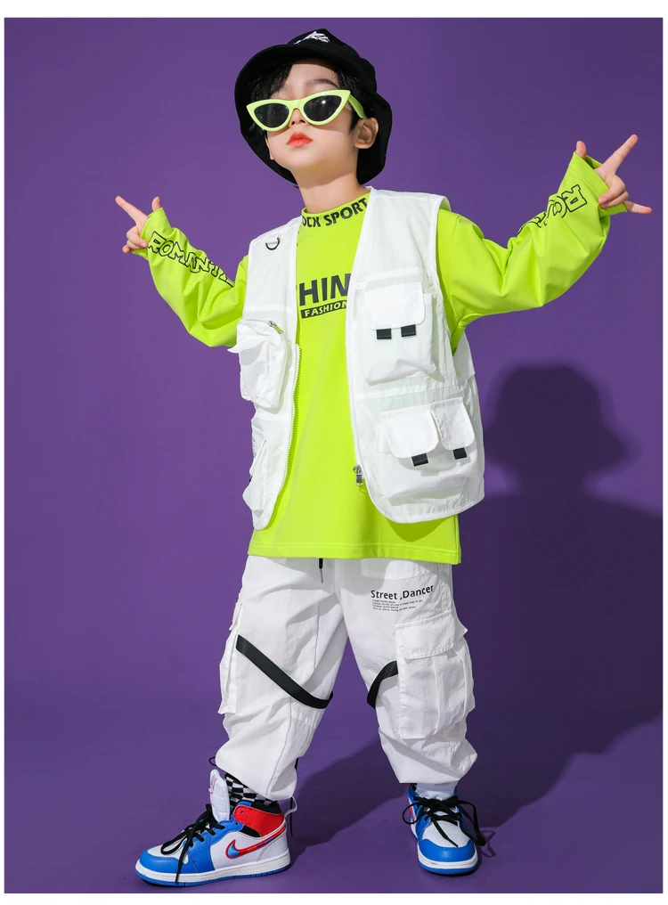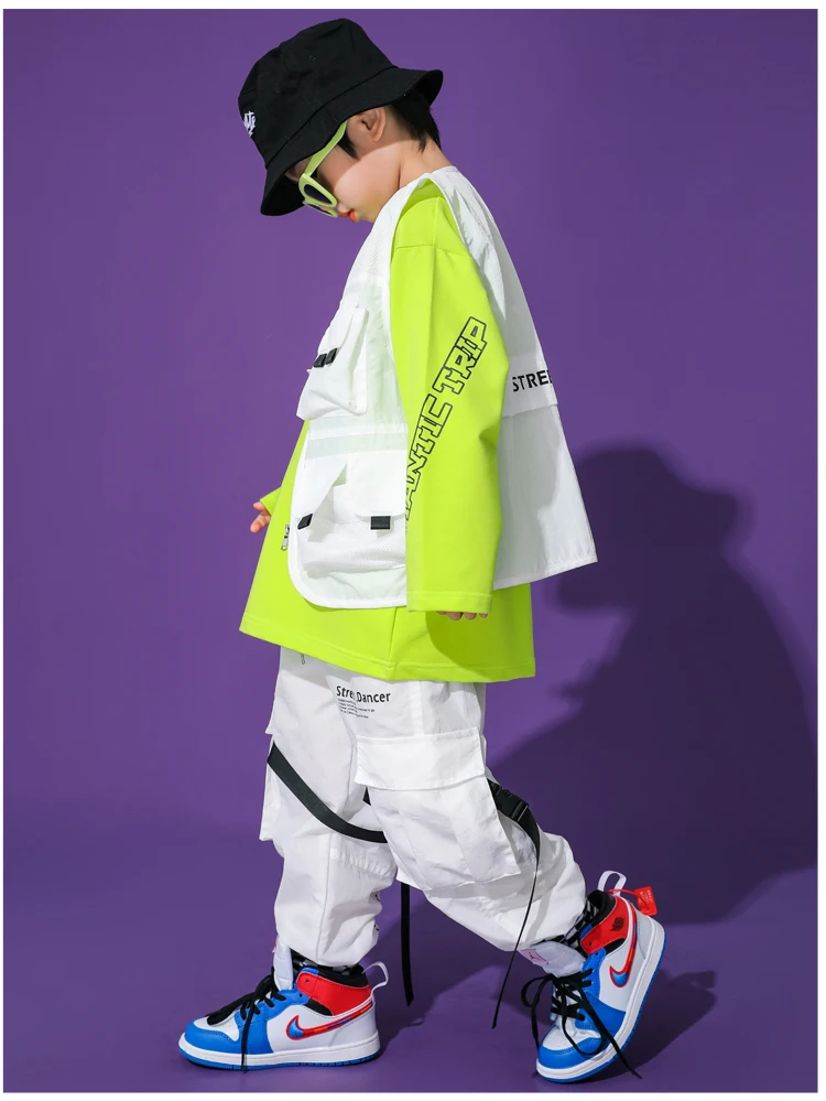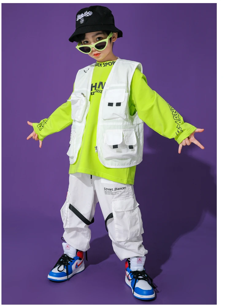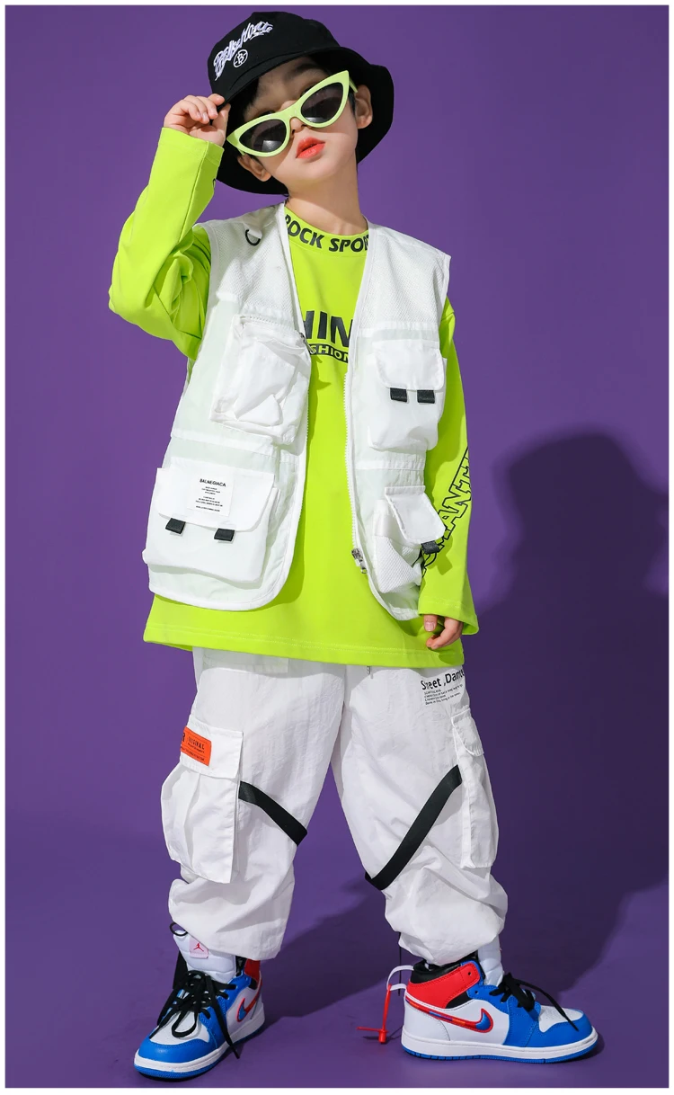 Для маленьких мальчиков костюм для танцев в стиле хип-хоп белый костюмный жилет топы, штаны джаз сценический Наряд Бесплатная доставка Современная детская одежда в стиле хип-хоп одежда для сцены BL5479