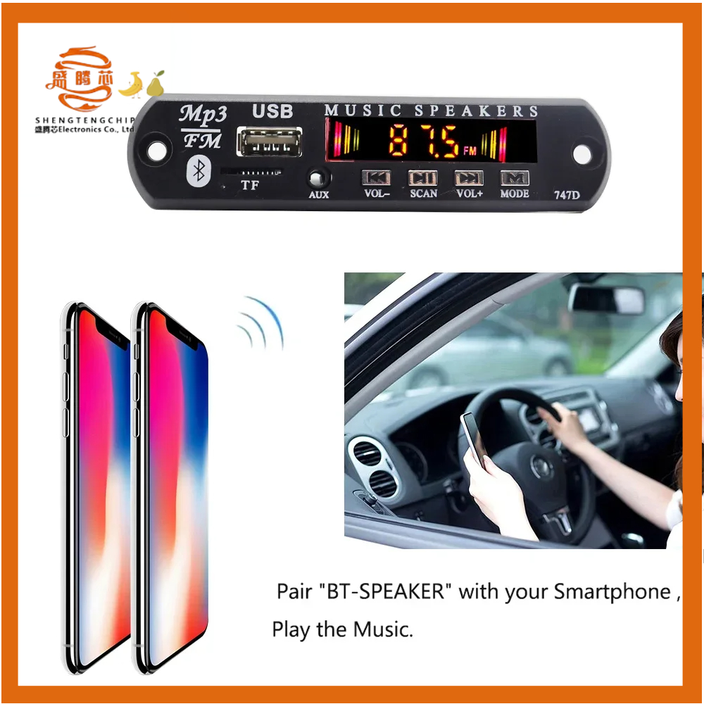 С модулем аудиоприемника Bluetooth, когда сотовый телефон и модуль Bluetooth соответствуют, файлы MP3 или неразрушающие файлы APE через Bluetooth отправляются на продукт модуля приемника Bluetooth для воспроизведения, что значительно помогло функции продукта и развлечений. Этот продукт также похож на обычную плату декодера MP3, воспроизводить файлы MP3 с U-диска или TF-карты, а также для радиовещания.