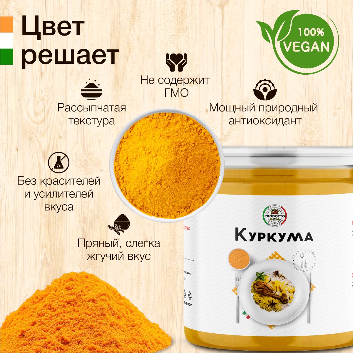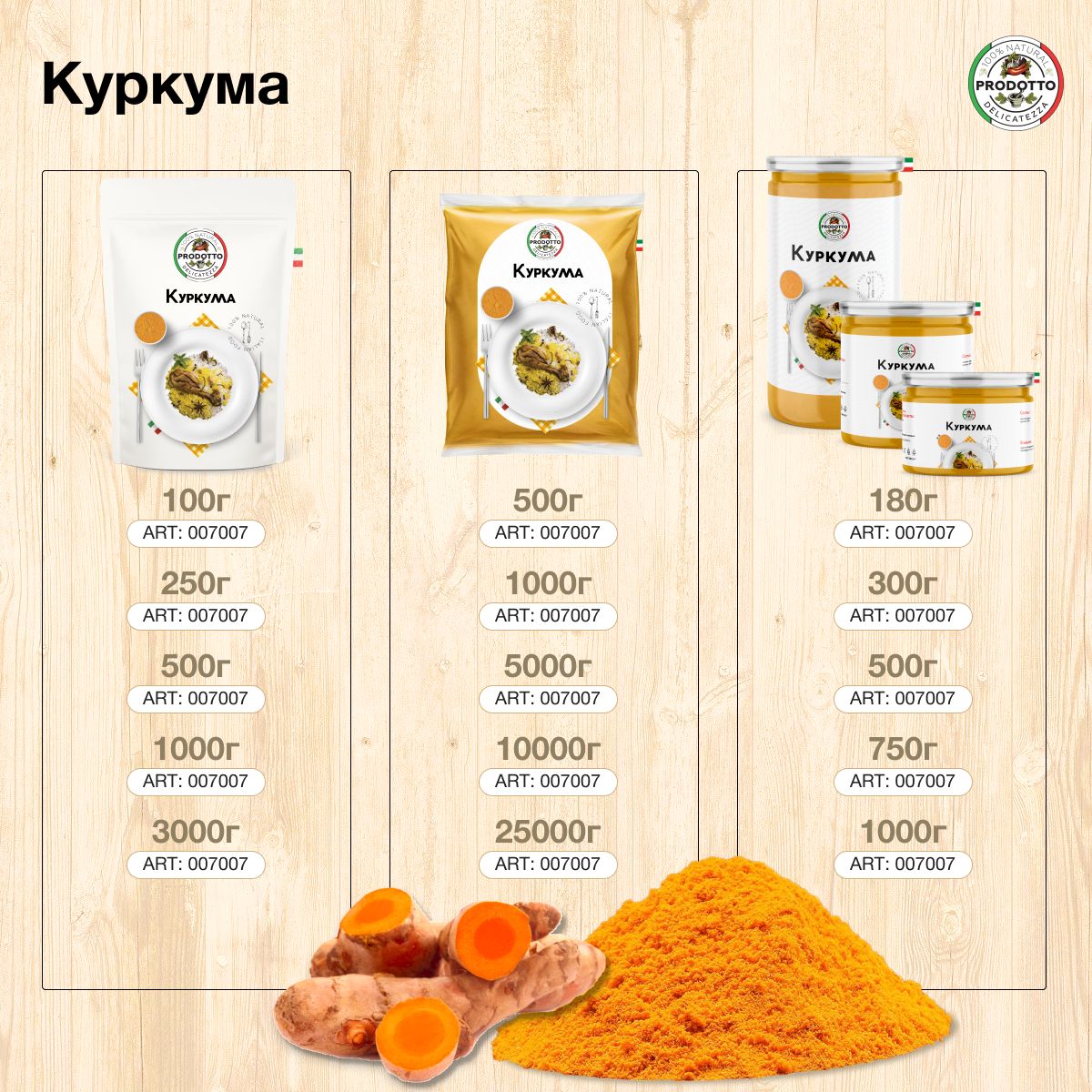 Описание: Куркума - солнечная пряность, которая повысит иммунитет и усилит яркость ваших блюд. Наша куркума изготовлена по ГОСТу без красителей, примесей и усилителей вкуса. Куркумин - мощный антиоксидант с богатым витаминно-минеральным составом. Куркума это уникальная специя из Индии без которой на Востоке не обходится ни одно блюдо. Добавлять в пищу надо небольшие порции приправы, чтобы насытить вкус и цвет продукта. Простые блюда в дуэте с куркумой получаются вкусными. Например: рис, картофель, рыба, мясо, сыры, овощи, крупы, фрукты, ягоды, макаронные изделия. Добавляют в чай, выпечку, супы, салаты. Мелкий помол без комочков и посторонних примесей имеет рассыпчатую текстуру и равномерный оранжево-желтый оттенок. Аромат схож с миксом запаха имбиря и апельсина, имеет свежий пряно-древесный подтон. Выбирайте фасовку на любой случай: компактную или большую, чтобы хватило надолго. Герметичная упаковка на 100% сохранит все свойства приправы и защитит от влаги и солнечного света. На выбор различная фасовка и упаковка