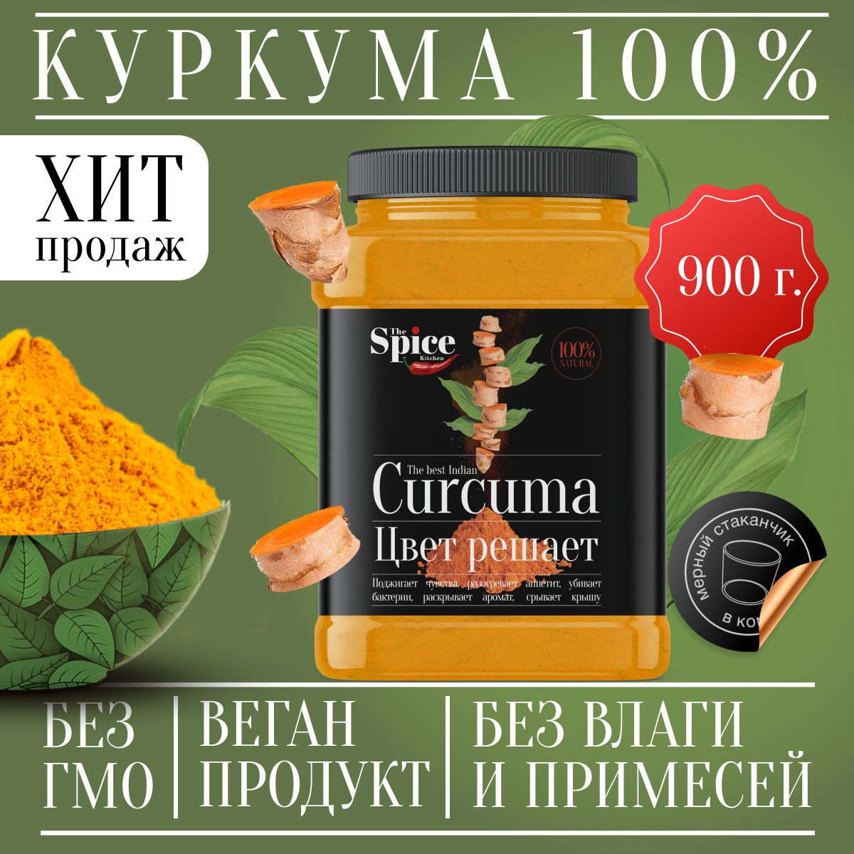 Для оздоровления: куркума молотая настоящая 900 г с повышенным содержанием куркумина, приправа для плова курицы риса