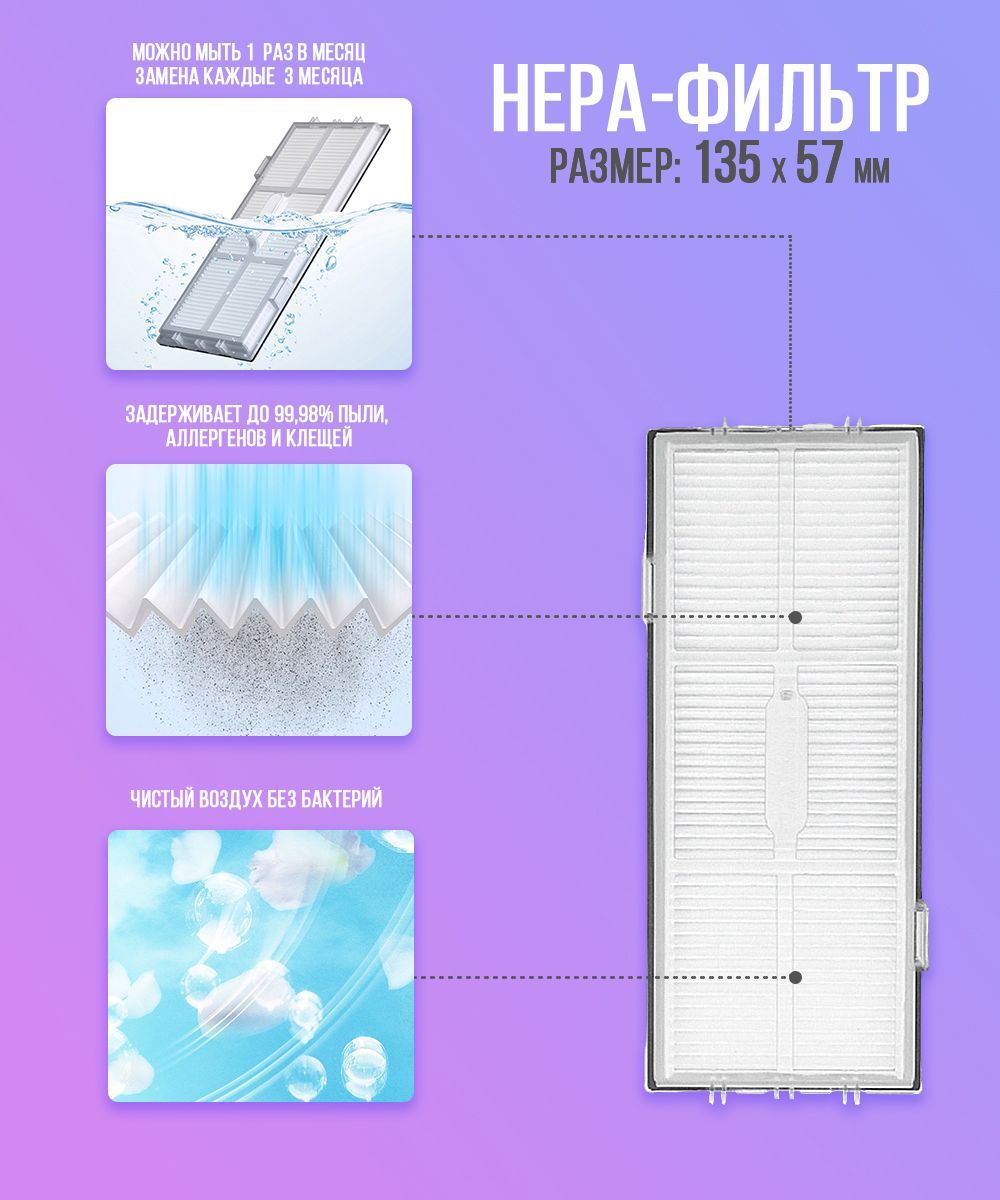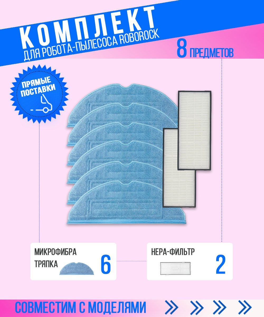 Описание: Комплект 2 HEPA-фильтра+6 салфеток из  микрофибры для робота пылесоса Roborock S7 S7 + S7 Plus S7 Max T7S T7S PlusHEPA-фильтр подходит для робота пылесоса Roborock S7 S7 + S7 Plus S7 Max T7S T7S Plus необходим для фильтрации воздуха от пыльцы, микроорганизмов, бактерий и пылевых клещей. Эффективен до 99.5%.