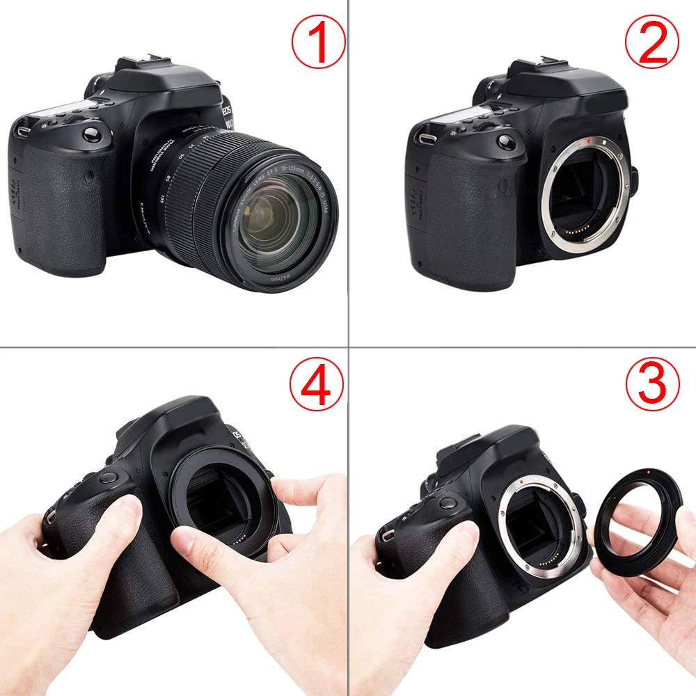 1. С помощью этого обратного кольца вы можете повернуть общий объектив к макрообъективу и прикрепить его к APS-C Sony E mount или полнокадровой камере.