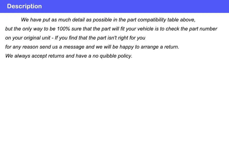 Пожалуйста, проверьте номер детали производителя (обычно штампованный в пластик или корпус) перед заказом