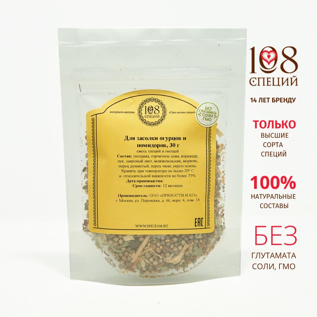 Для засолки огурцов и помидоров смесь 108 специй, 30 г