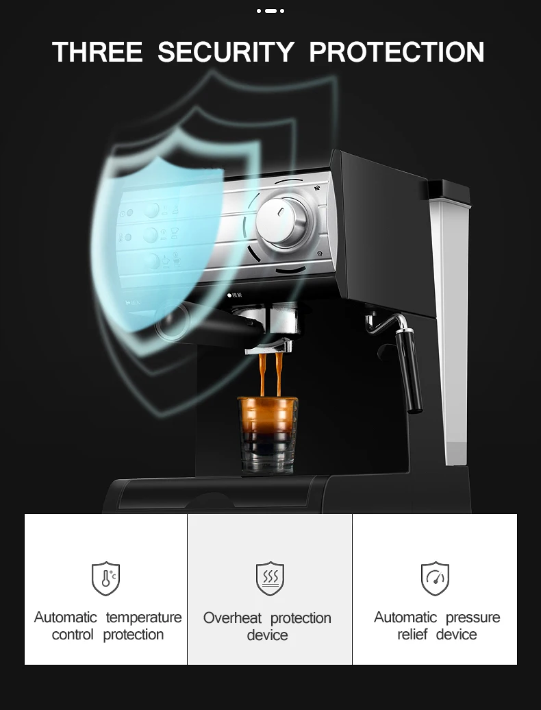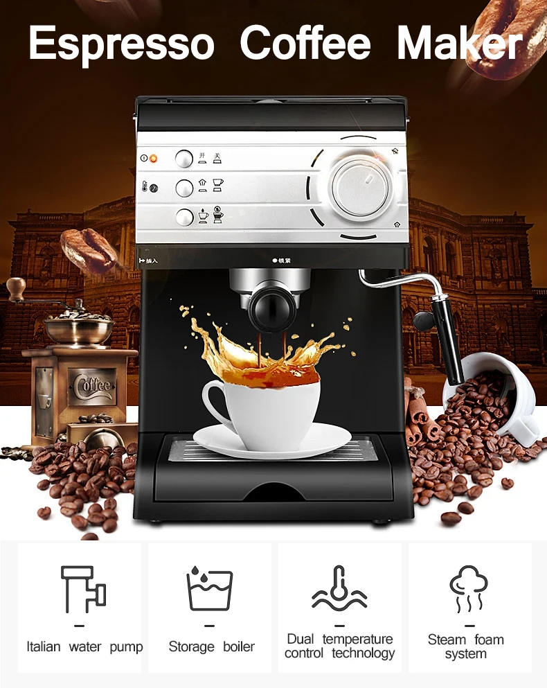 DMWD 1.5L Итальянская Кофеварка для эспрессо, электрическая кофемашина для капучино, вспениватель молока, пара высокого давления, 20 бар, 220 В