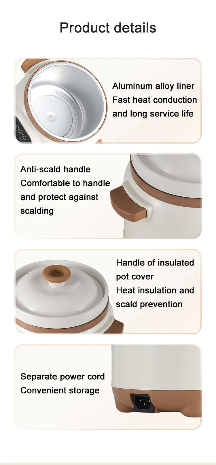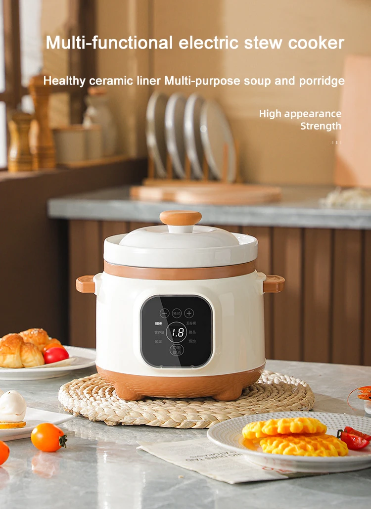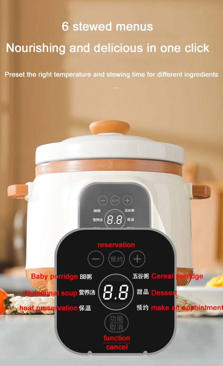 DMWD л Керамическая электрическая медленная кастрюля, бытовая детская еда, каша, десертная кастрюля, котел для завтрака, тушения, супа, медленная кастрюля