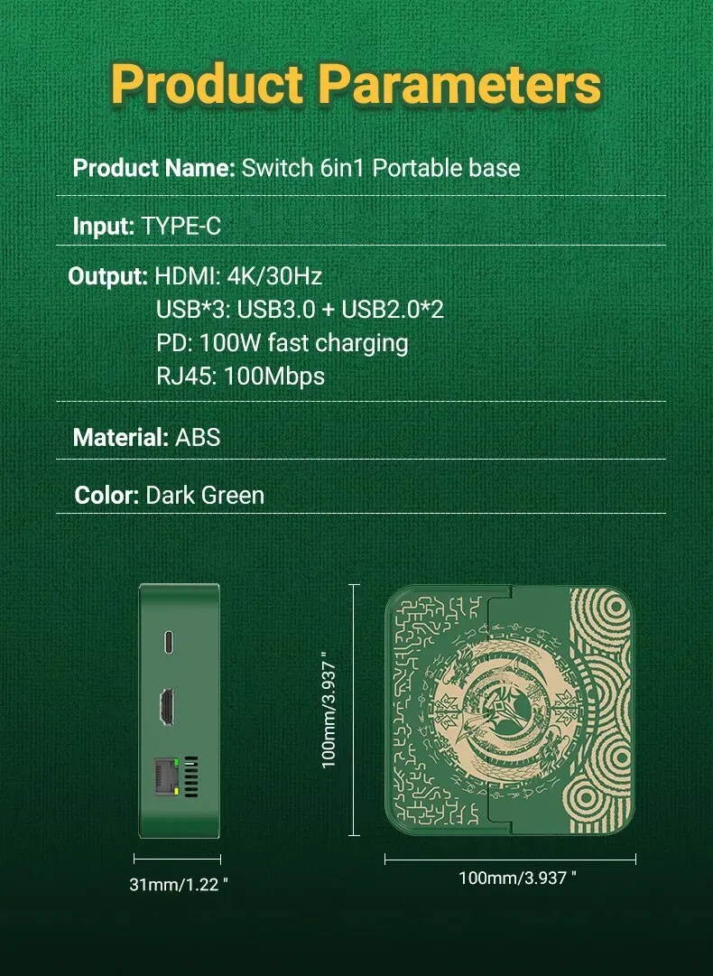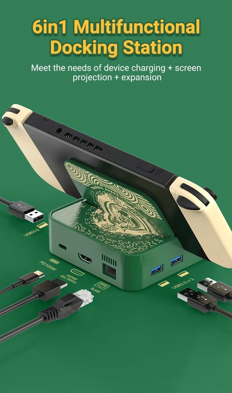 Игровая док-станция USB C 6 в 1-это не только многофункциональный концентратор, но и держатель, в который входят 4K HDMI,USB 3,0/2,0, RJ45 100M, интерфейсы зарядки PD 100 Вт, прекрасный выбор для вашей работы и жизни. Сэкономьте место и Принесите больше удовольствия.
