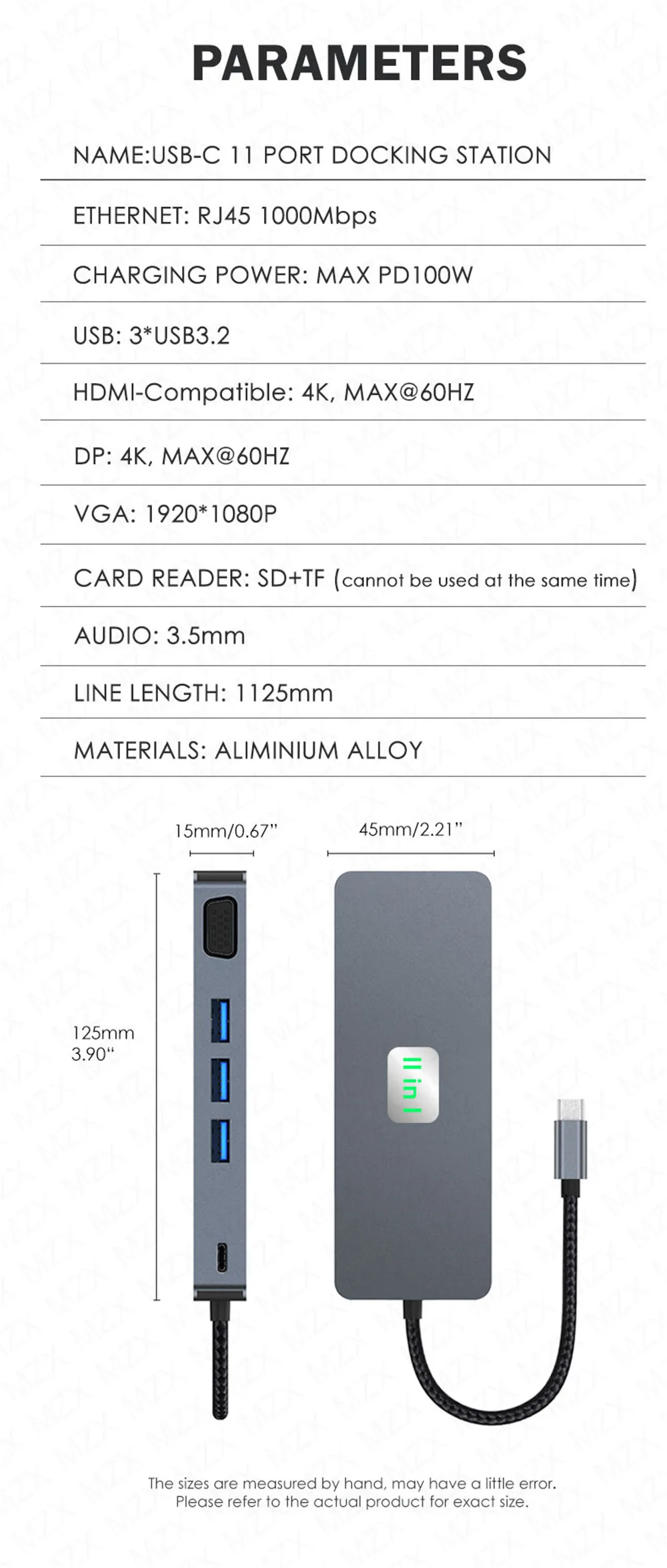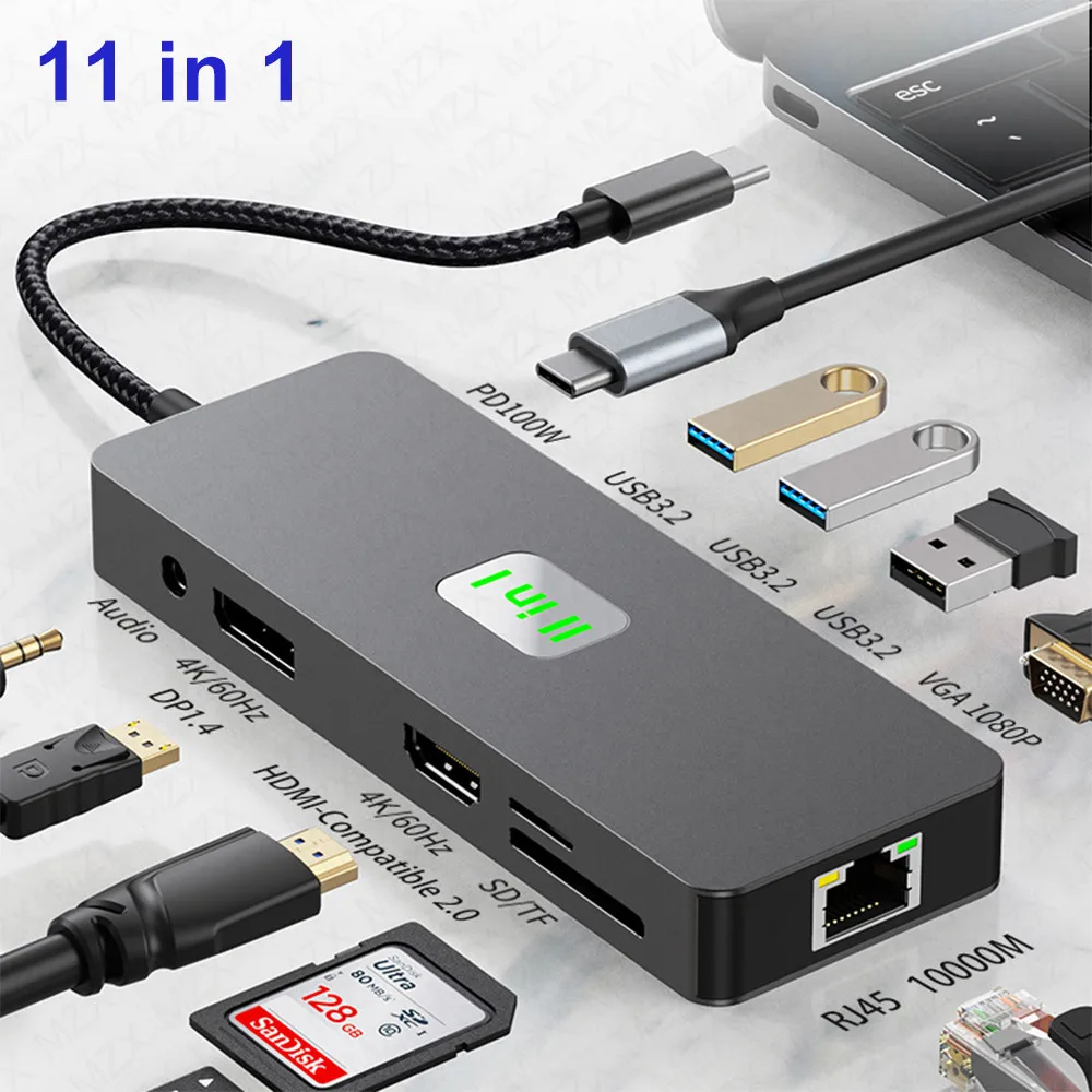 Док-станция MZX 11 в 1 USB-концентратор 3.2 MST HDMl DP 4K 60 Гц VGA 1000M RJ45