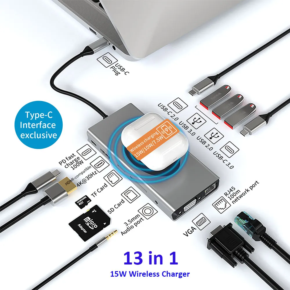 >>> 13in1 HDMl Wireless, док-станция с расширением разветвителя USB-концентратора, 13 портов: