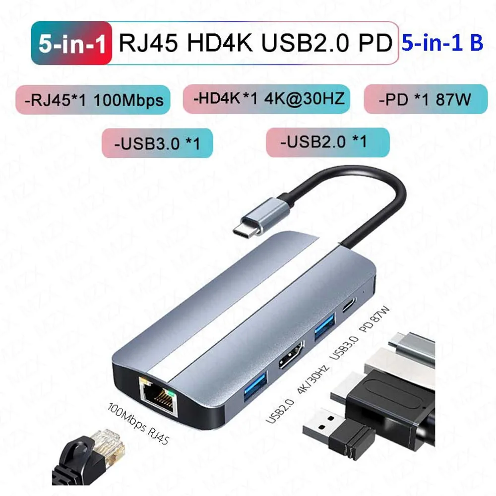 Док-станция MZX USB 3,0 2,0 концентратор разветвитель Тип C 3 0 адаптер с несколькими разъемами многопортовый USBC TF SD-считыватель карт PD 100 Вт 87 Вт VGA
