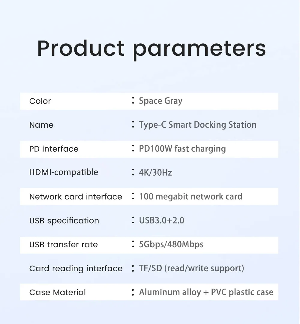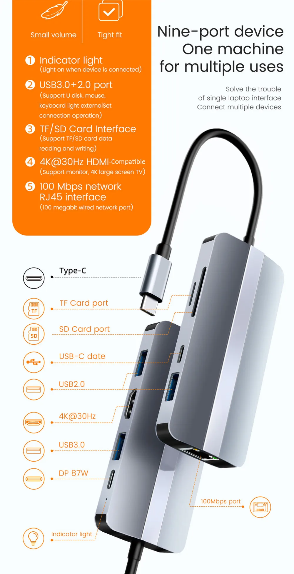 <span class="SnowProductCharacteristics_SnowProductCharacteristicsItem__titleContent__534v9">9 in 1 ports</span> RJ45 TF SD PD USB-C USB3.0 USD2.0*2 HDMI-Compatible
