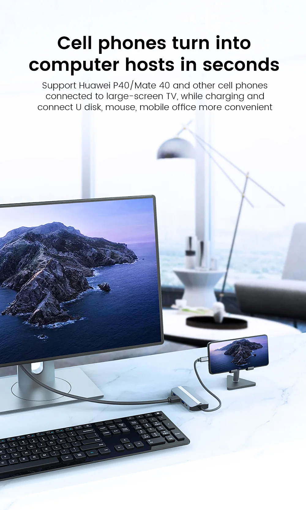 Подключайтесь к проектору, телевизору, монитору и другим большим экранам через 4K HD для двухэкранного дисплея