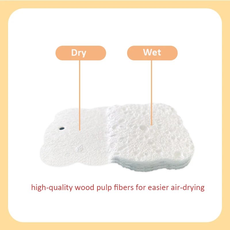 1. Хлопковый материал из древесной массы: Наша Чистящая губка изготовлена из древесной массы хлопка, которая мягкая и нежная, не повреждает руки, безопасна и экологична, обладает хорошей прочностью, может быть произвольно замешана, не легко деформируется и прочный.