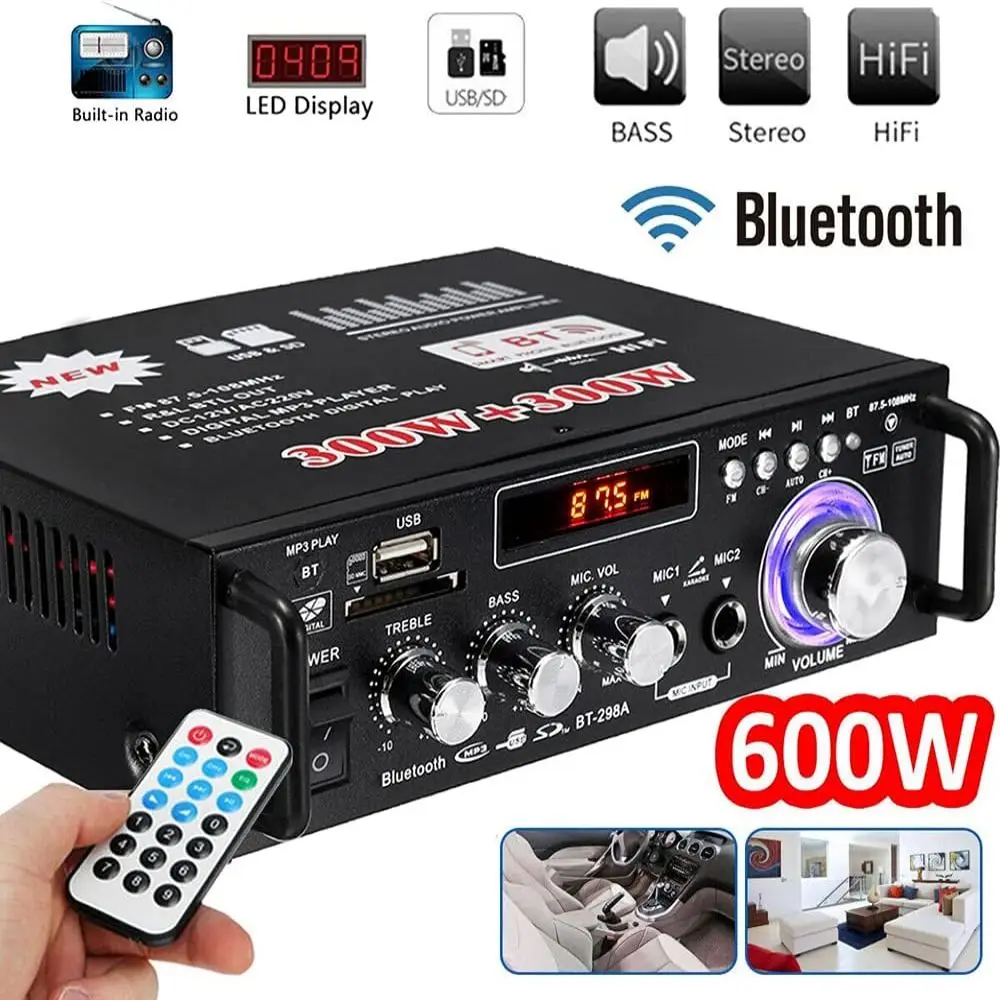 [Мощность 600 Вт]Этот двухканальный Hi-Fi стереоусилитель идеально подходит для вашей акустической системы караоке и домашнего кинотеатра. Это дает вам 300 Вт Мощность и 300 Вт RMS, и может вместить 2 комплекта из 4-6 дюймов, что позволяет вам наслаждаться высокого качества усиленный аудио.