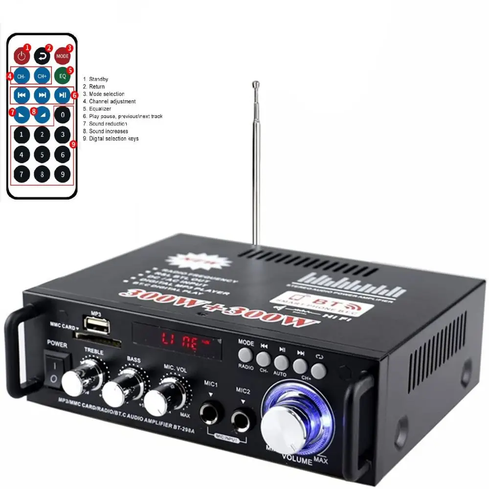 Домашний цифровой усилитель аудио 110V-240V 300W двухканальный Мощность Bluetooth усилитель Hifi стерео сабвуфер динамики караоке дома