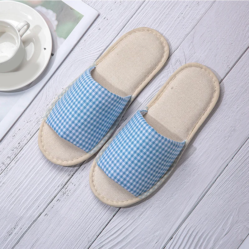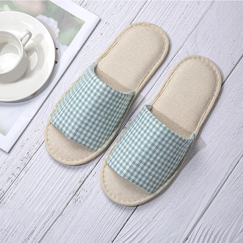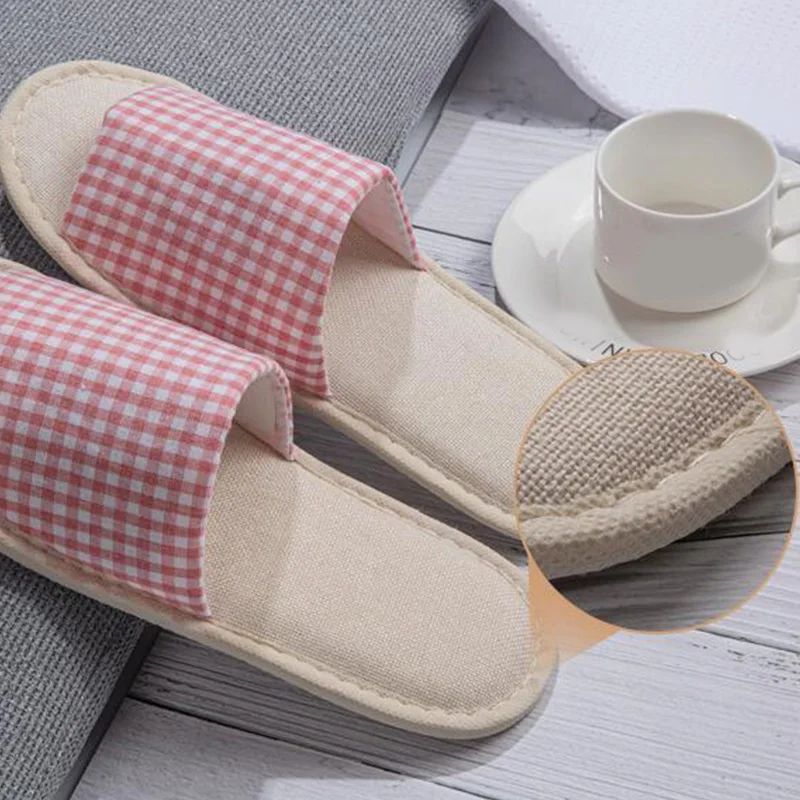Домашние тапочки унисекс, флип-тапочки для дома, для спальни, льняная обувь в клетку, плоская подошва, для влюбленных, 1 пара, весна-осень
