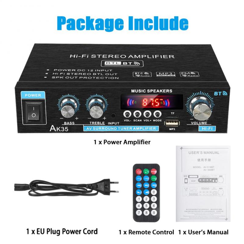 Усилитель мощности можно подключить к мобильным телефонам, компьютерам, планшетам, ноутбукам, MP3-плеерам, телевизорам и проекторам с AV-аудио (гнездо лотоса) или выходными отверстиями для наушников 3,5 мм и т. Д. Все виды мобильных телефонов на рынке могут быть подключены, которые могут осуществлять беспроводное воспроизведение.