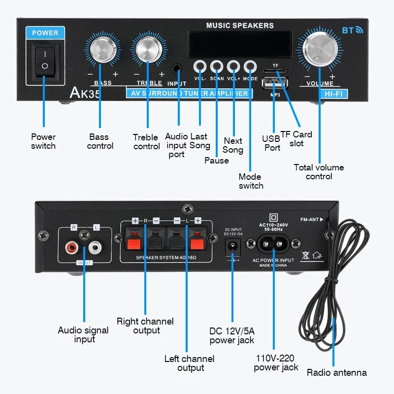 Домашний цифровой усилитель звука AK35 800 Вт 110-240 В