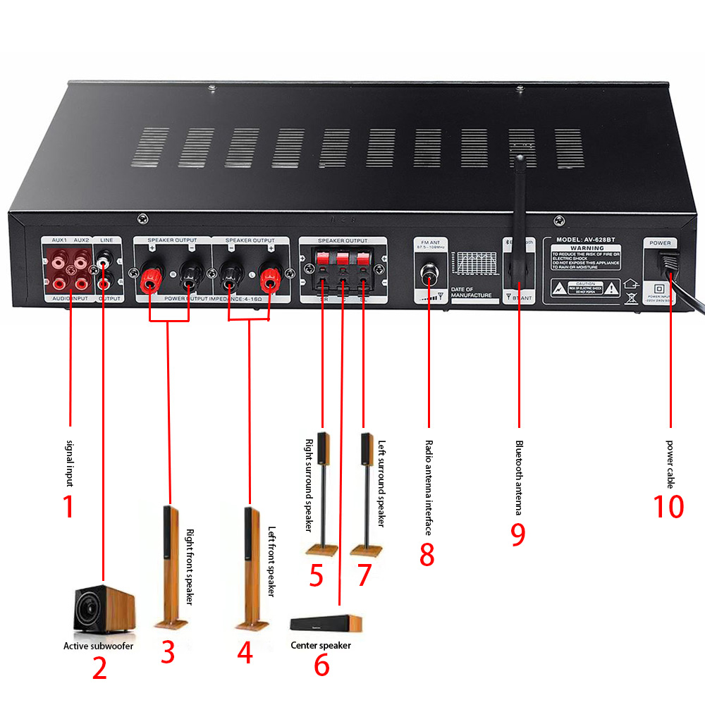 1. Этот усилитель представляет собой многофункциональный усилитель объемного звука, который подходит для Hi-Fi, домашнего кинотеатра или для небольших па и караоке событий!