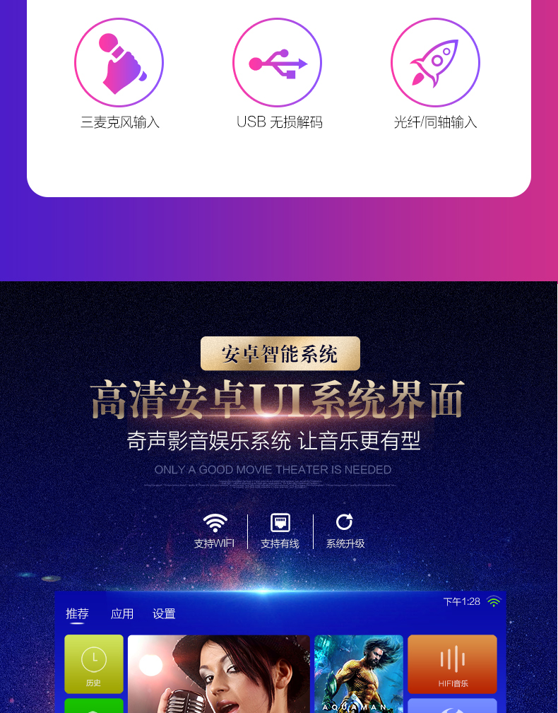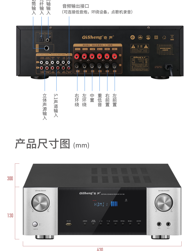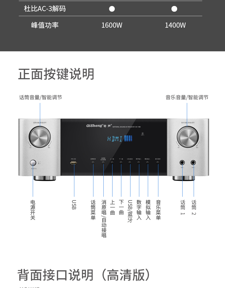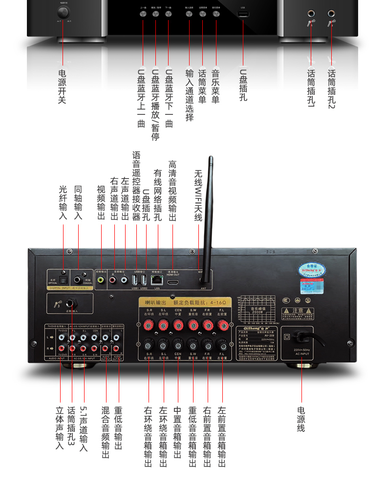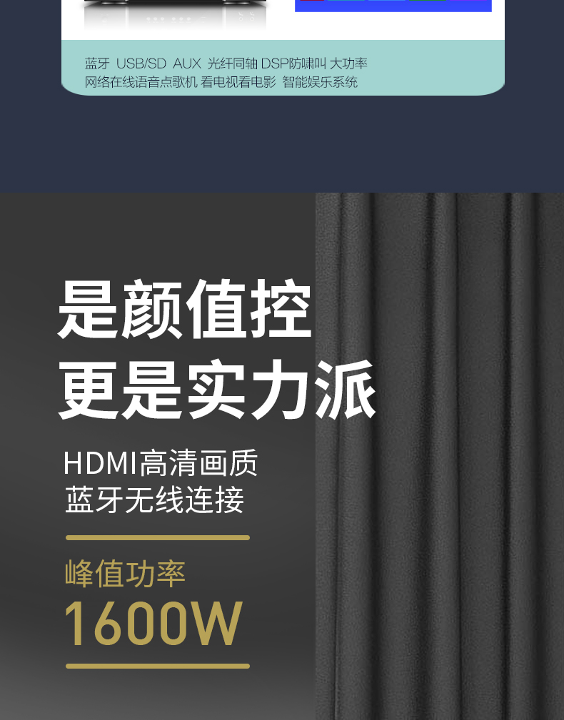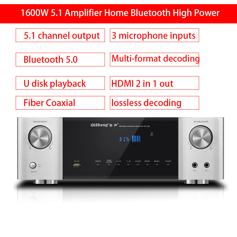 Домашний усилитель Bluetooth 1600, 5,1 Вт, HD AUX декодирование без потерь, мощный общественный усилитель для караоке, профессиональный HIFI усилитель звука