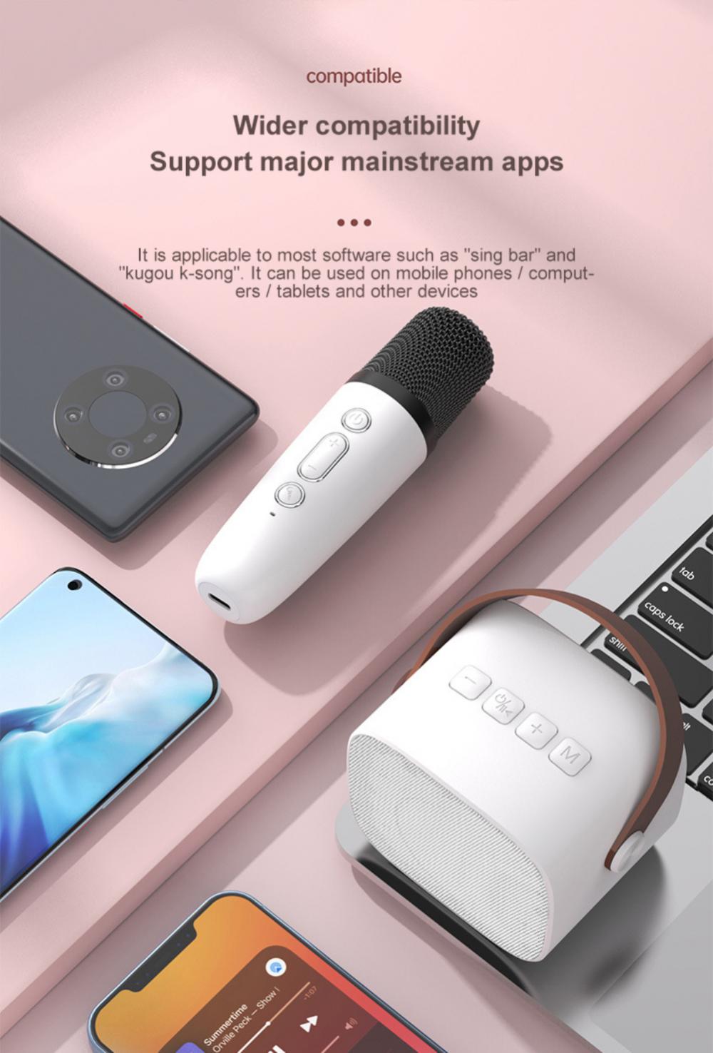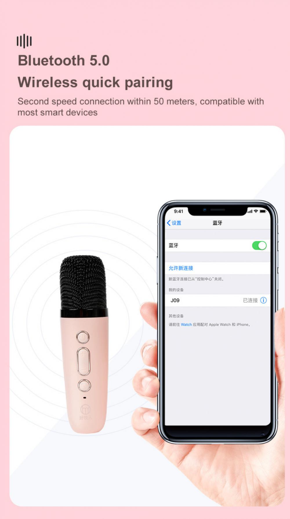 Мгновенное сопряжение с мобильными устройствами с большой стабильностью. Беспроводной микрофон автоматически подключается к динамику при включении на расстоянии до 32 футов. Поддерживает TF, хранящийся с песнями в формате MP3.