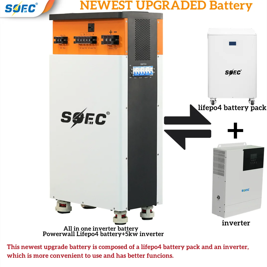 SOEC Powerwall 15KW 10KW Домашняя батарея Lifepo4 48V 51,2 V 300ah 200ah с инвертором 5 кВт BMS RS485 RS232 CAN для системы солнечной энергии