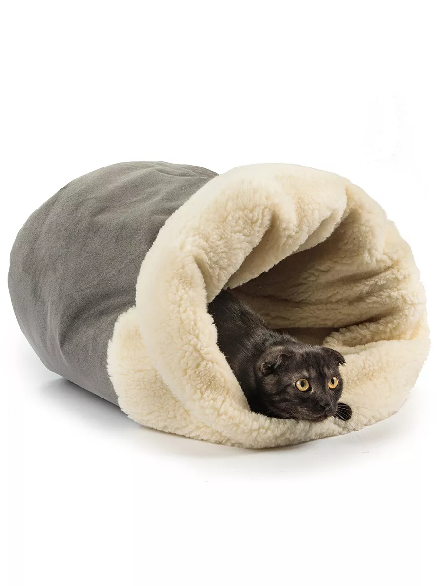 Домик нора для кошек и собак Нора с овчиной 50 см лежанка