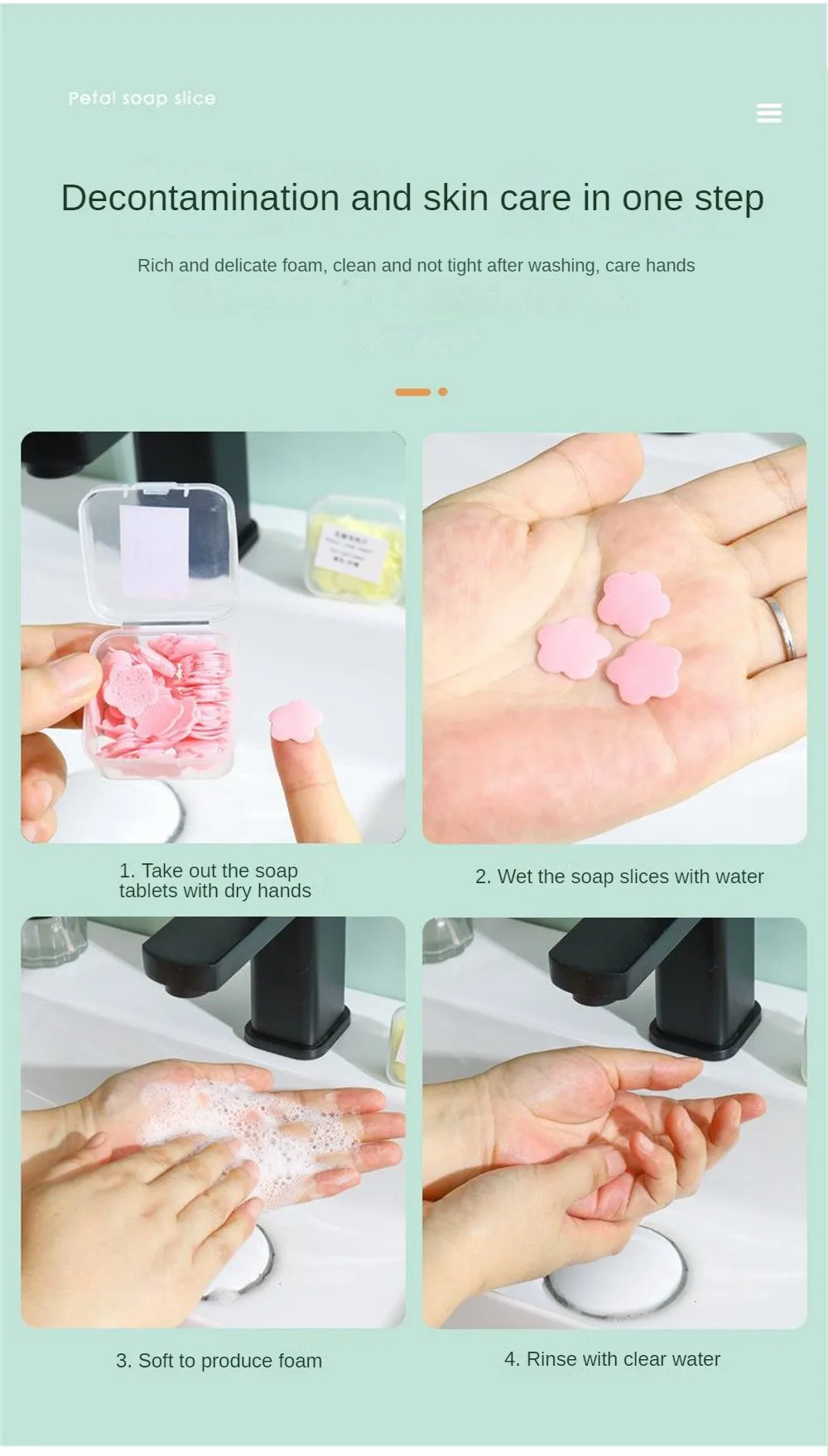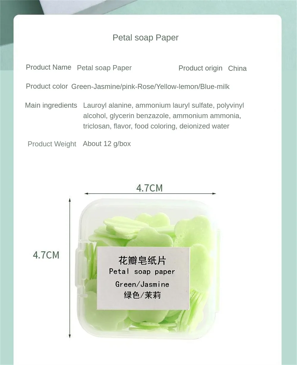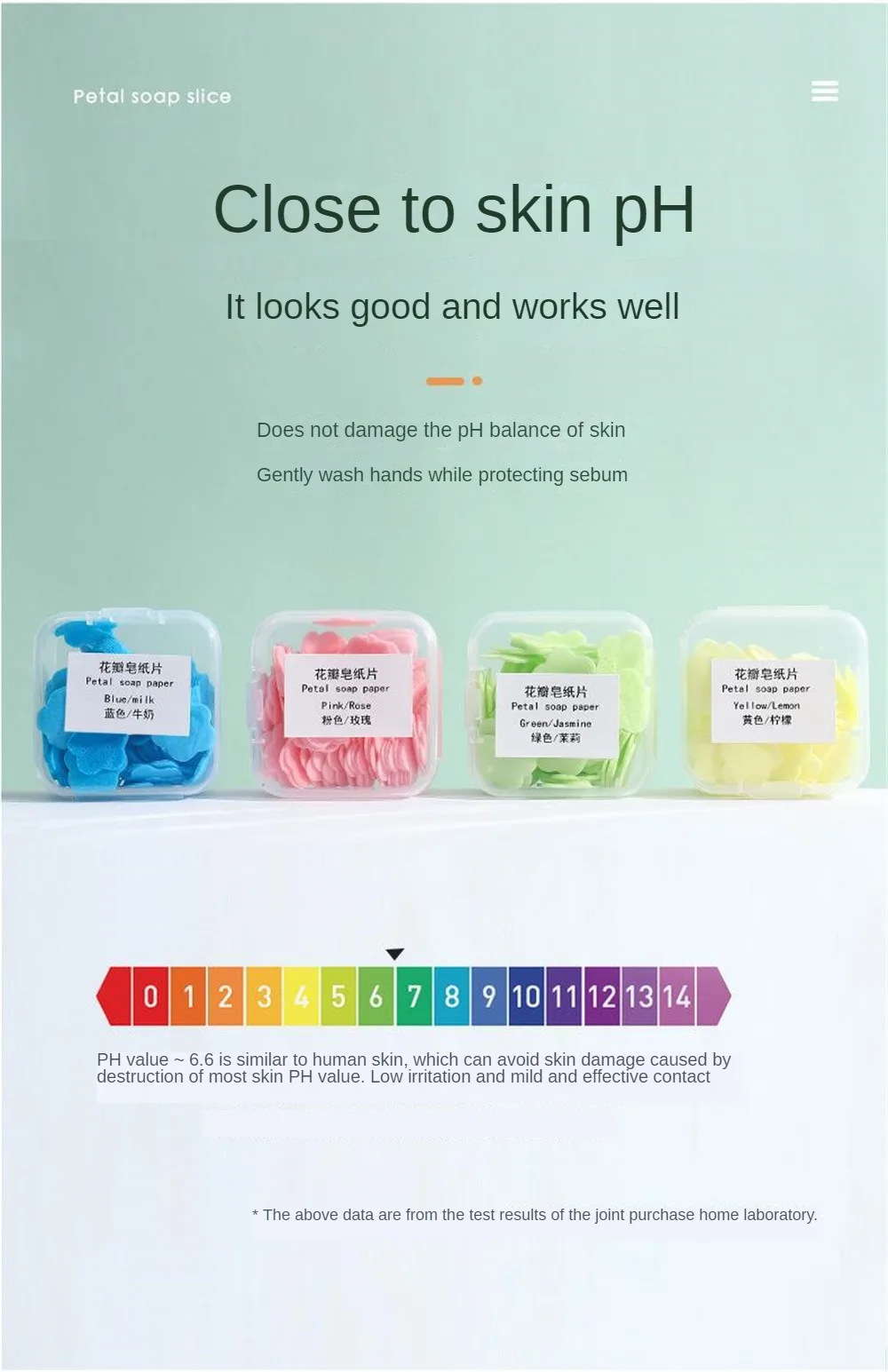 Дорожные мыльные листы Мытье рук Мыльная бумага Чистящие мыльные листы Одноразовая коробка Мыло Портативное лепестковое мыло Бумажные принадлежности для ванной